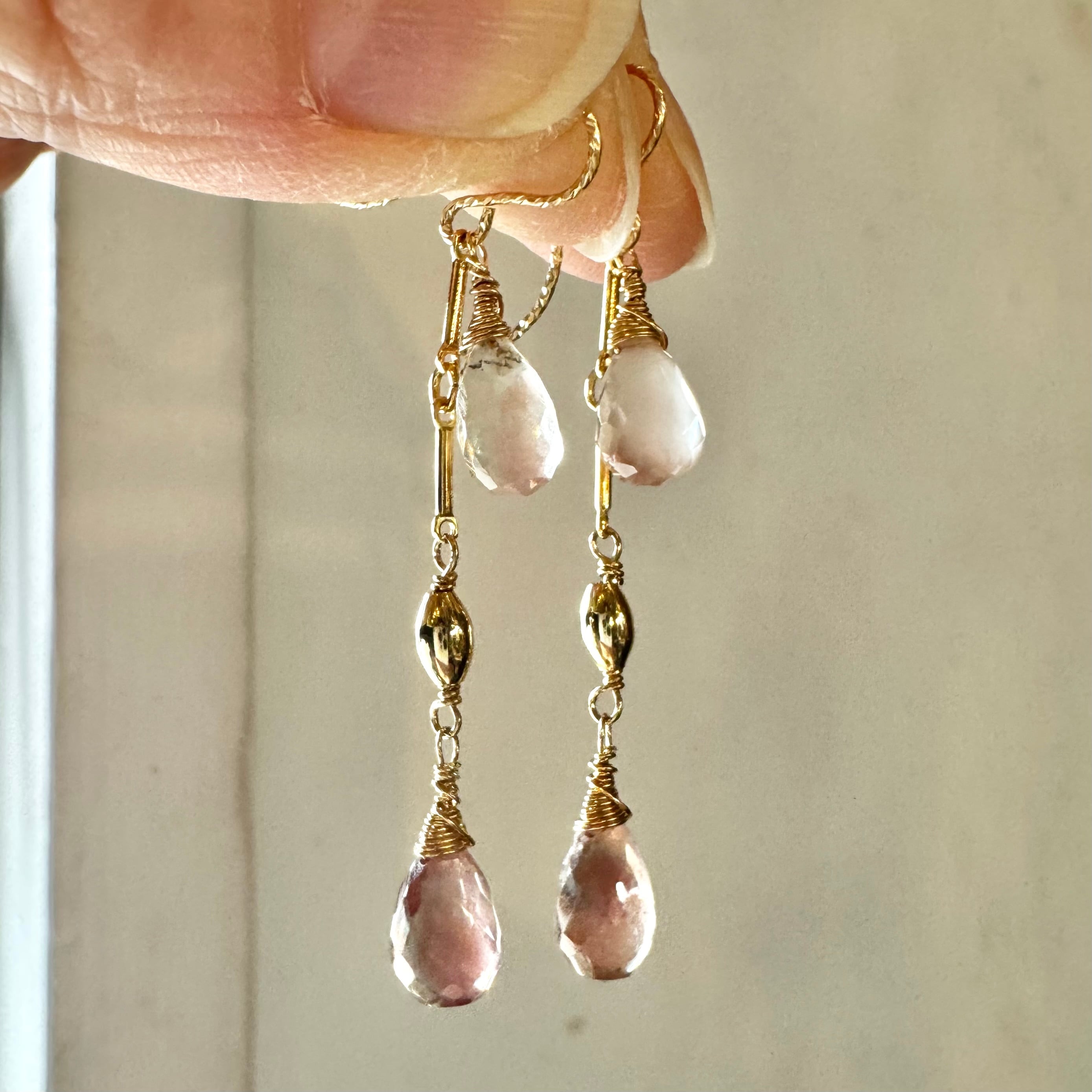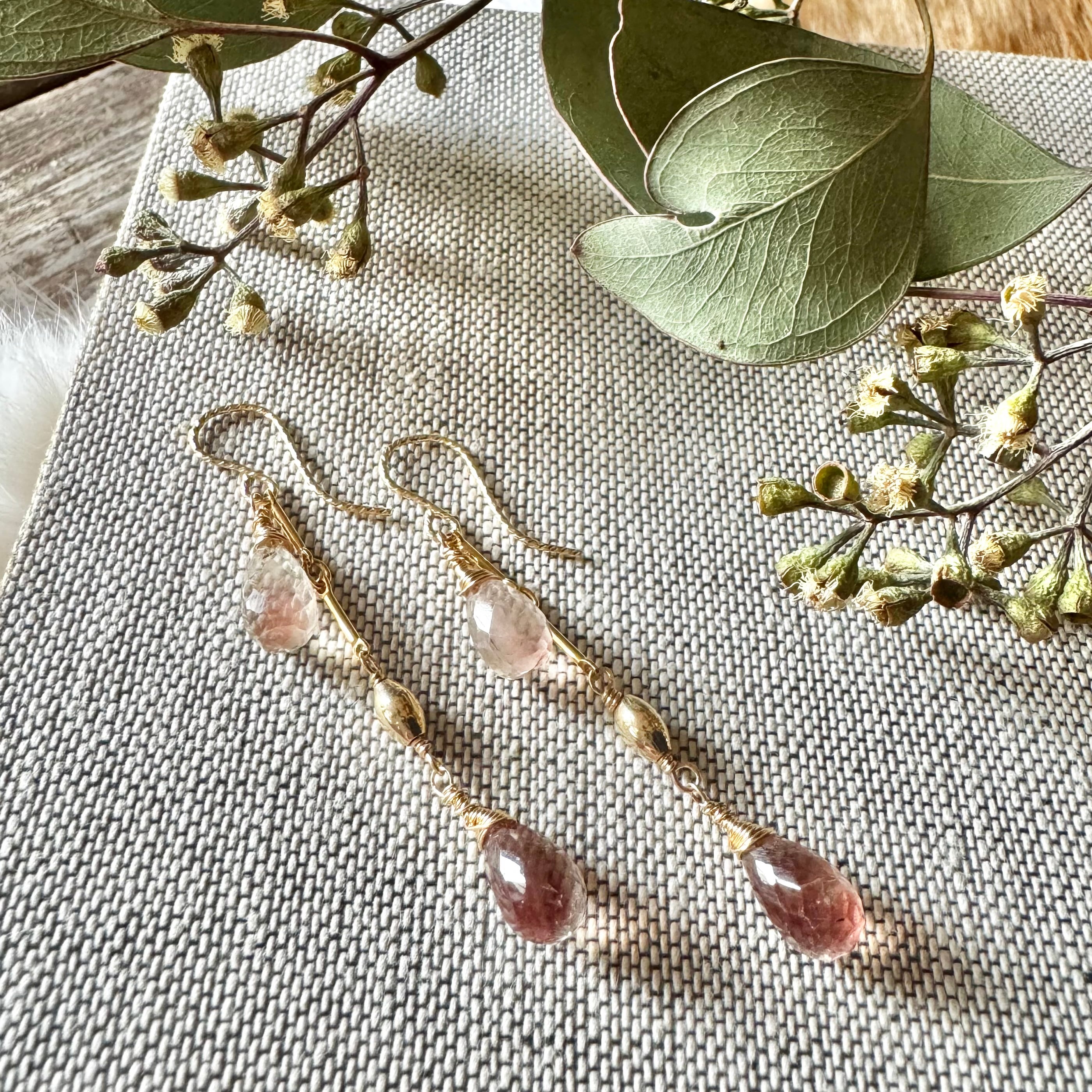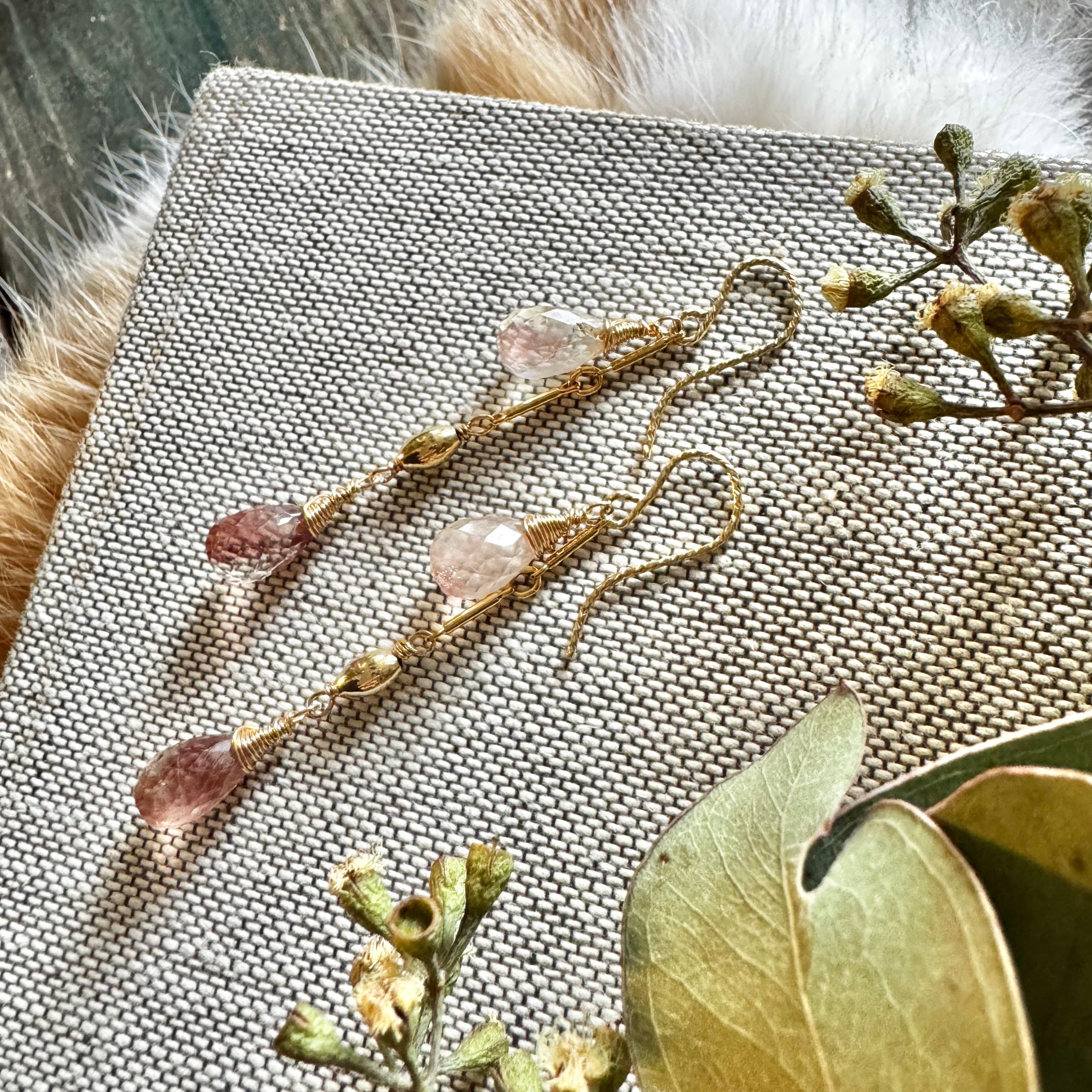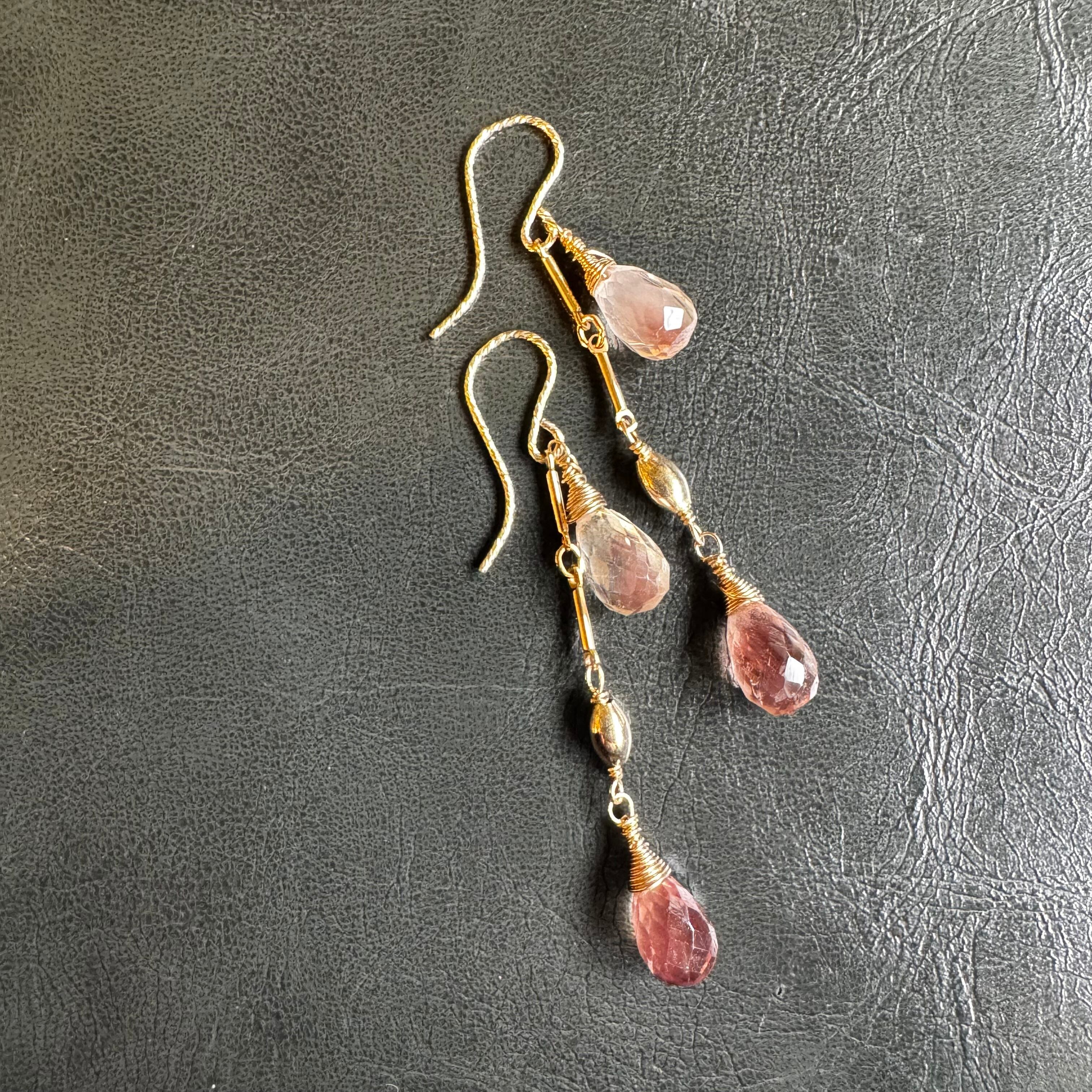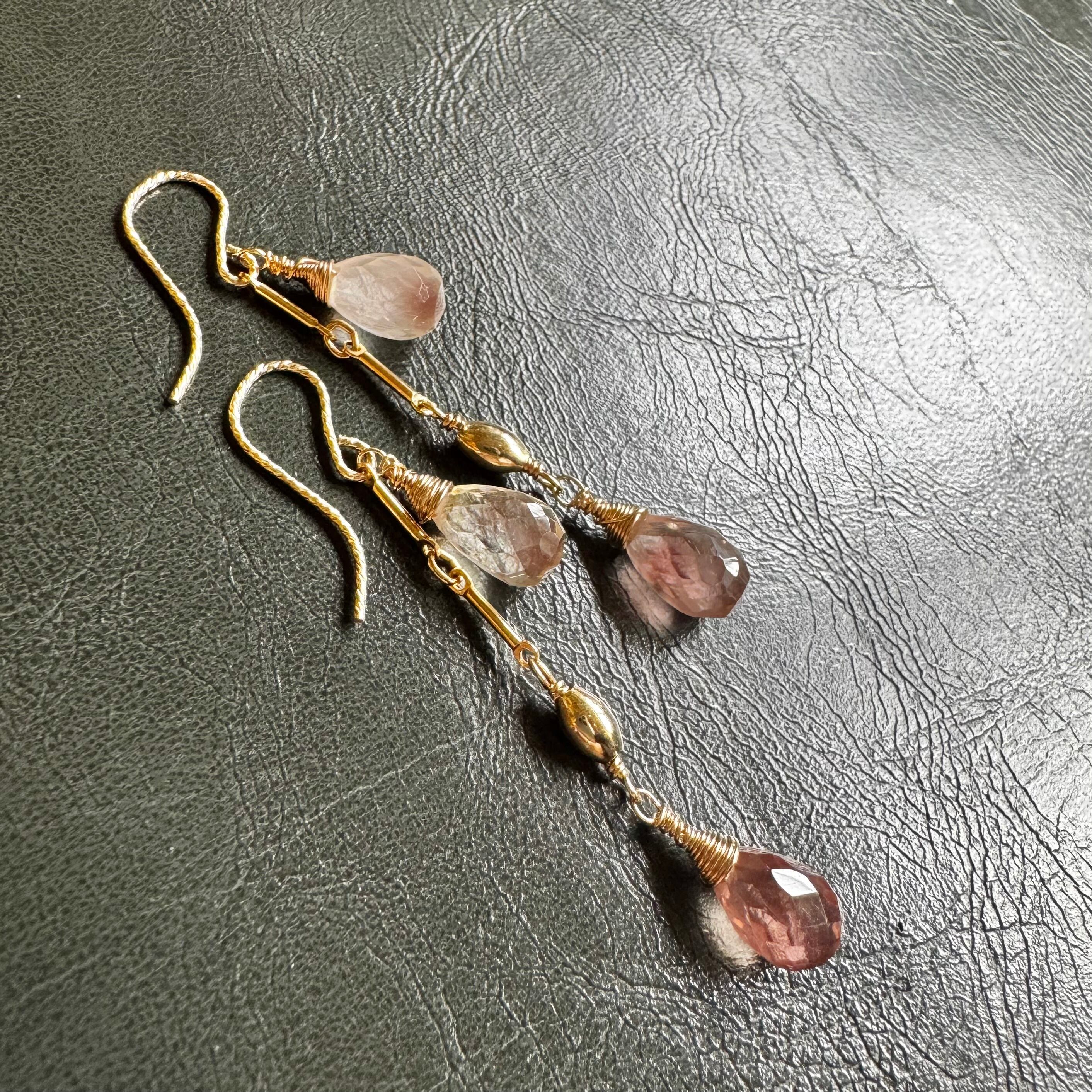 オレゴンサンストーンロング2粒ピアス(イヤリング)