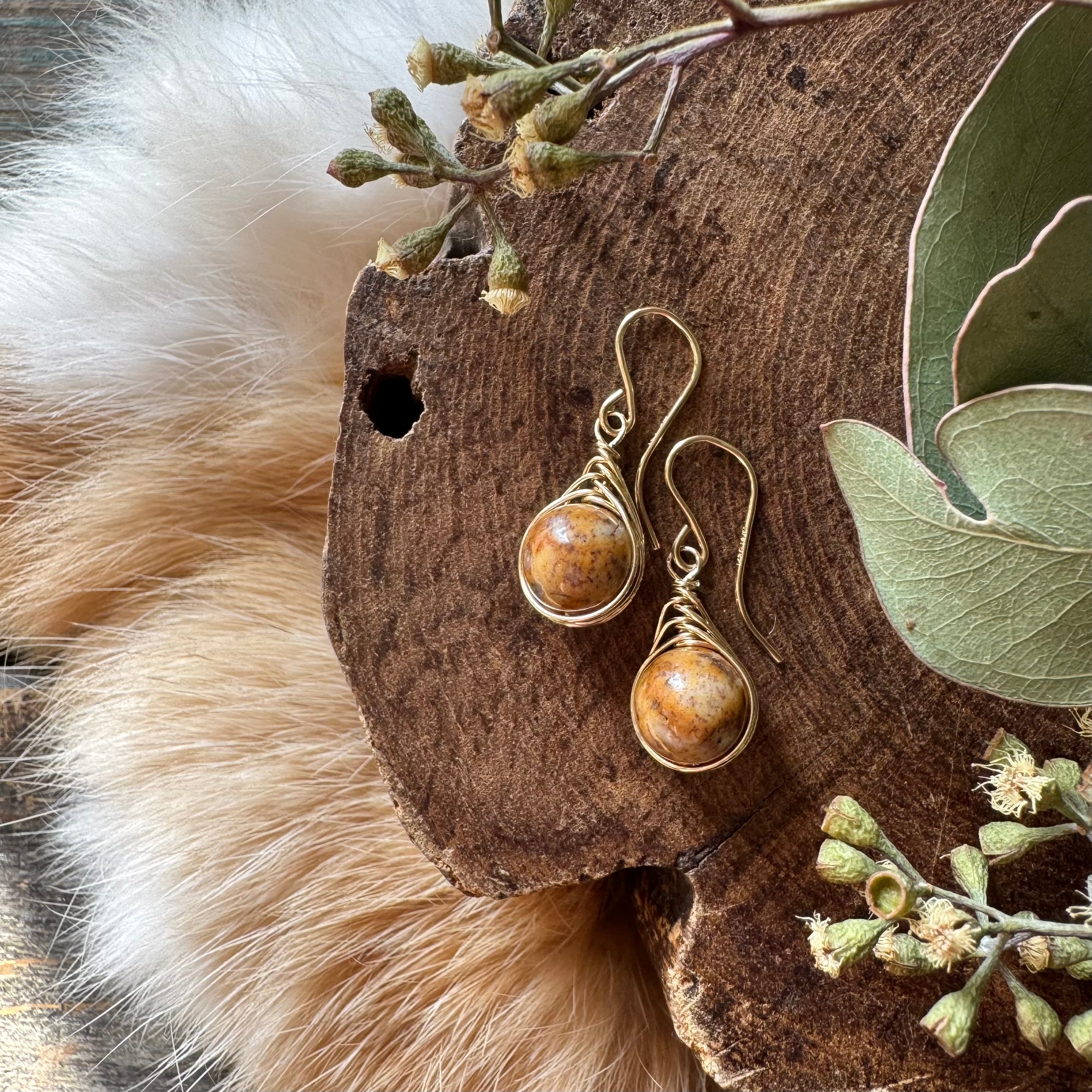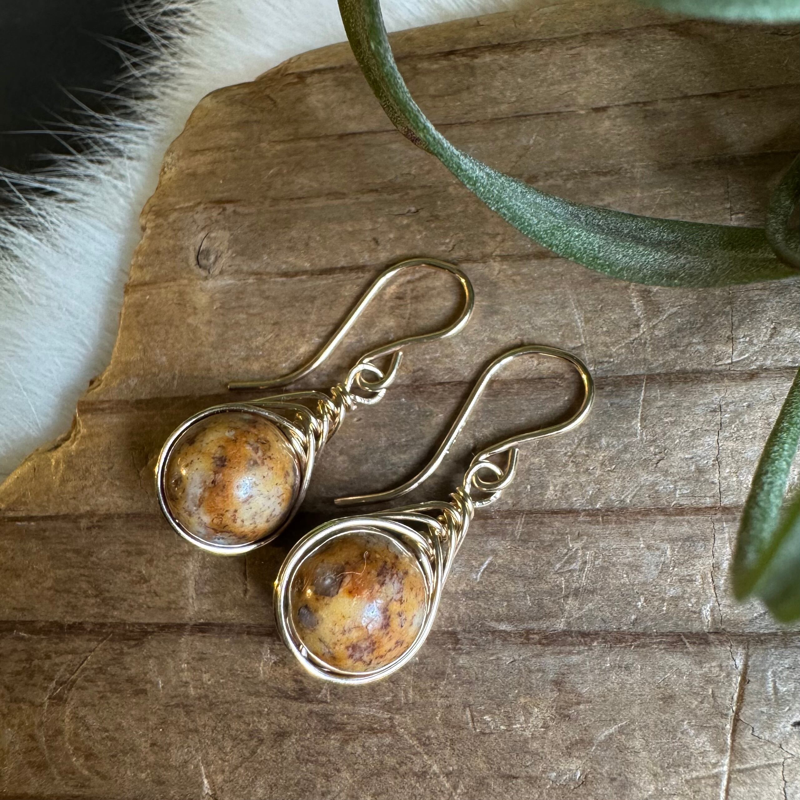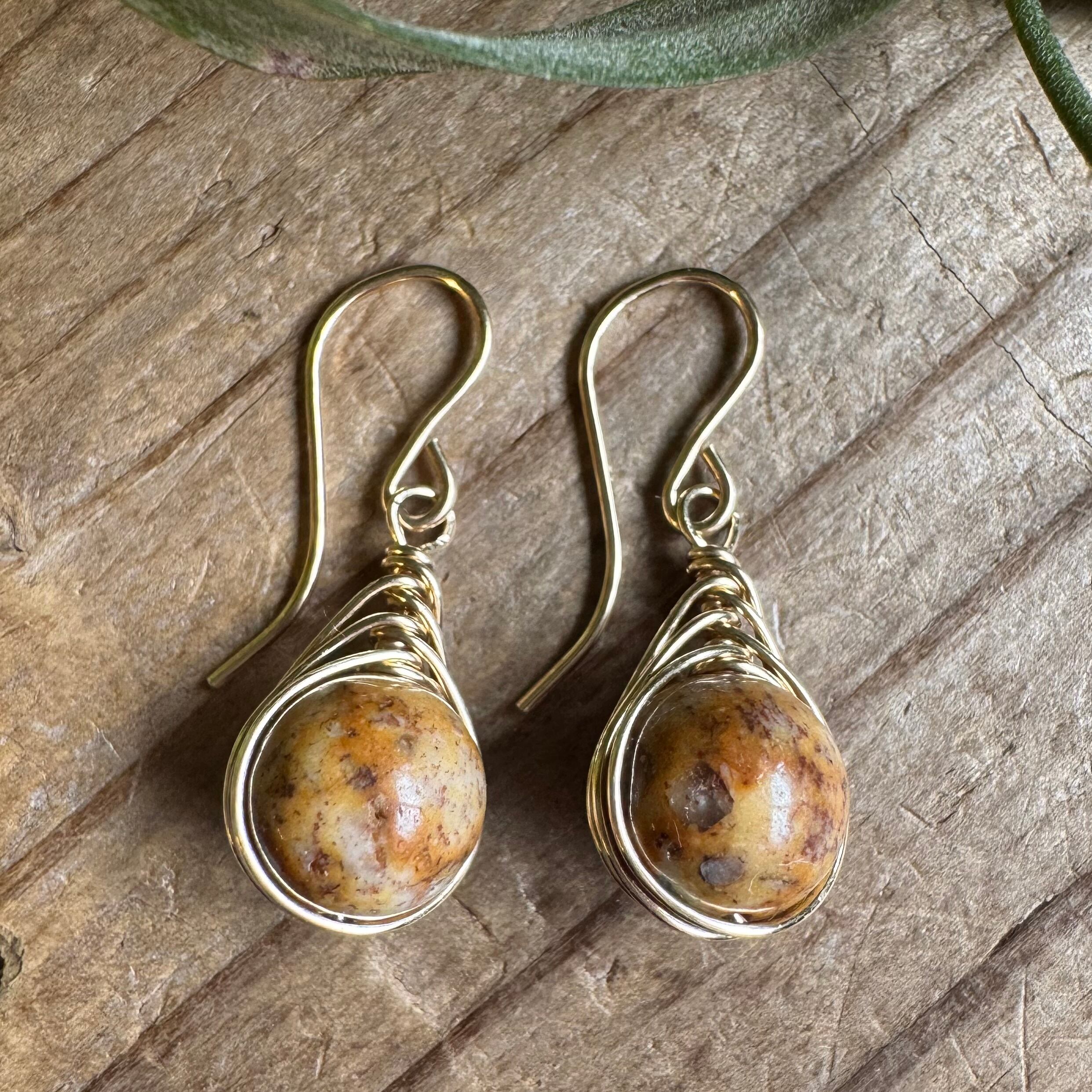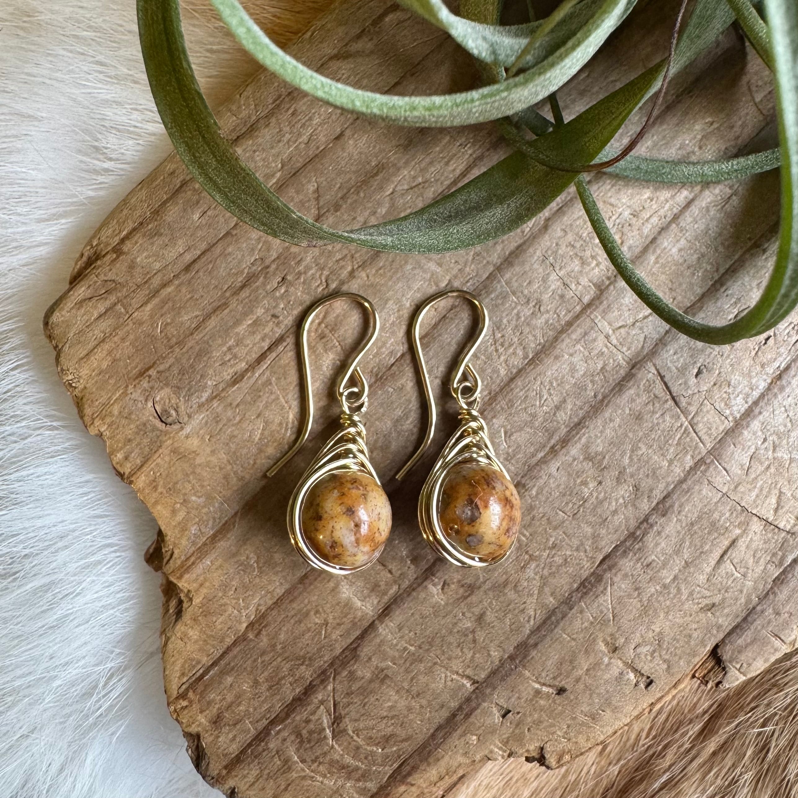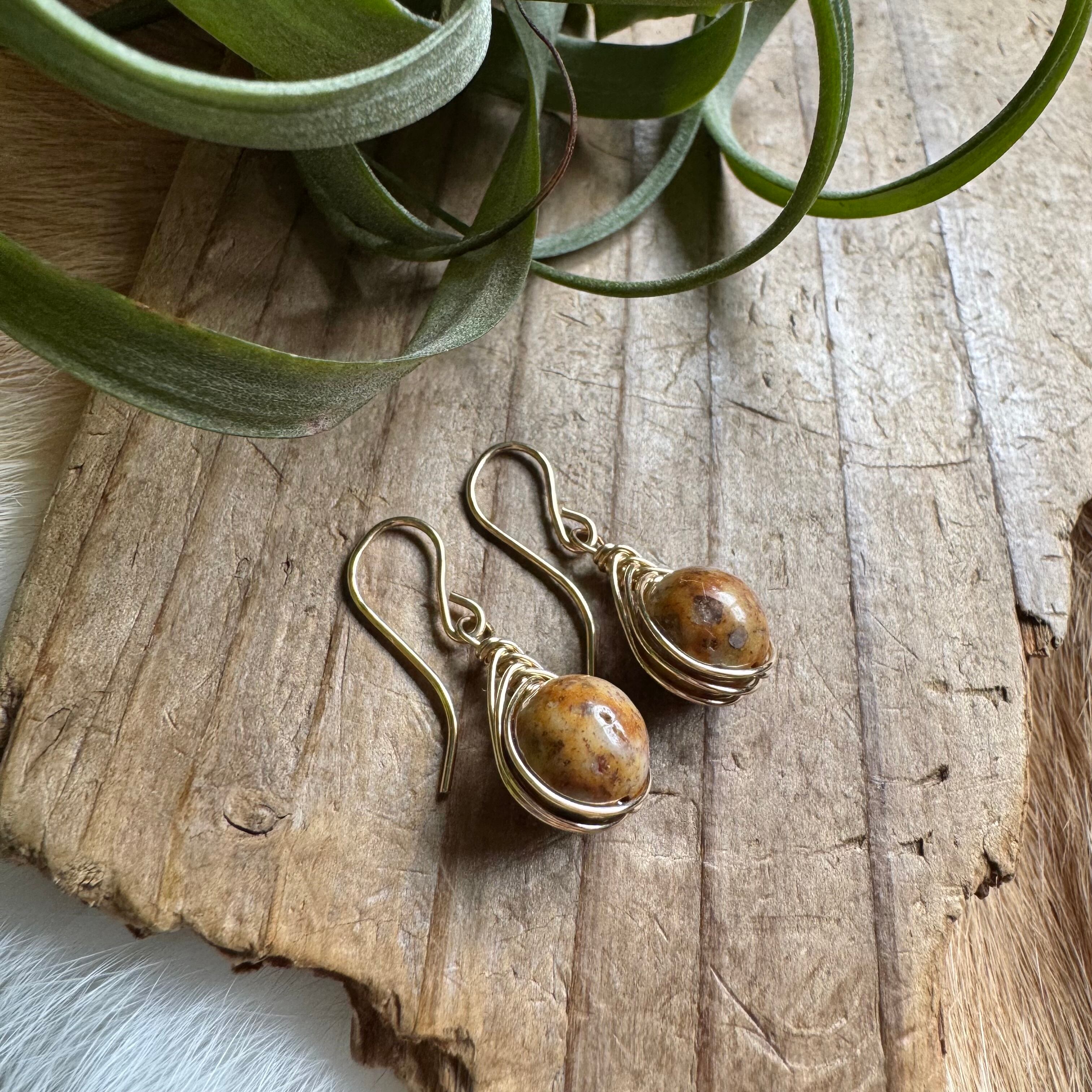 日本の石【レアストーン】姫川薬石*ワイヤーフレーミングミニピアス
