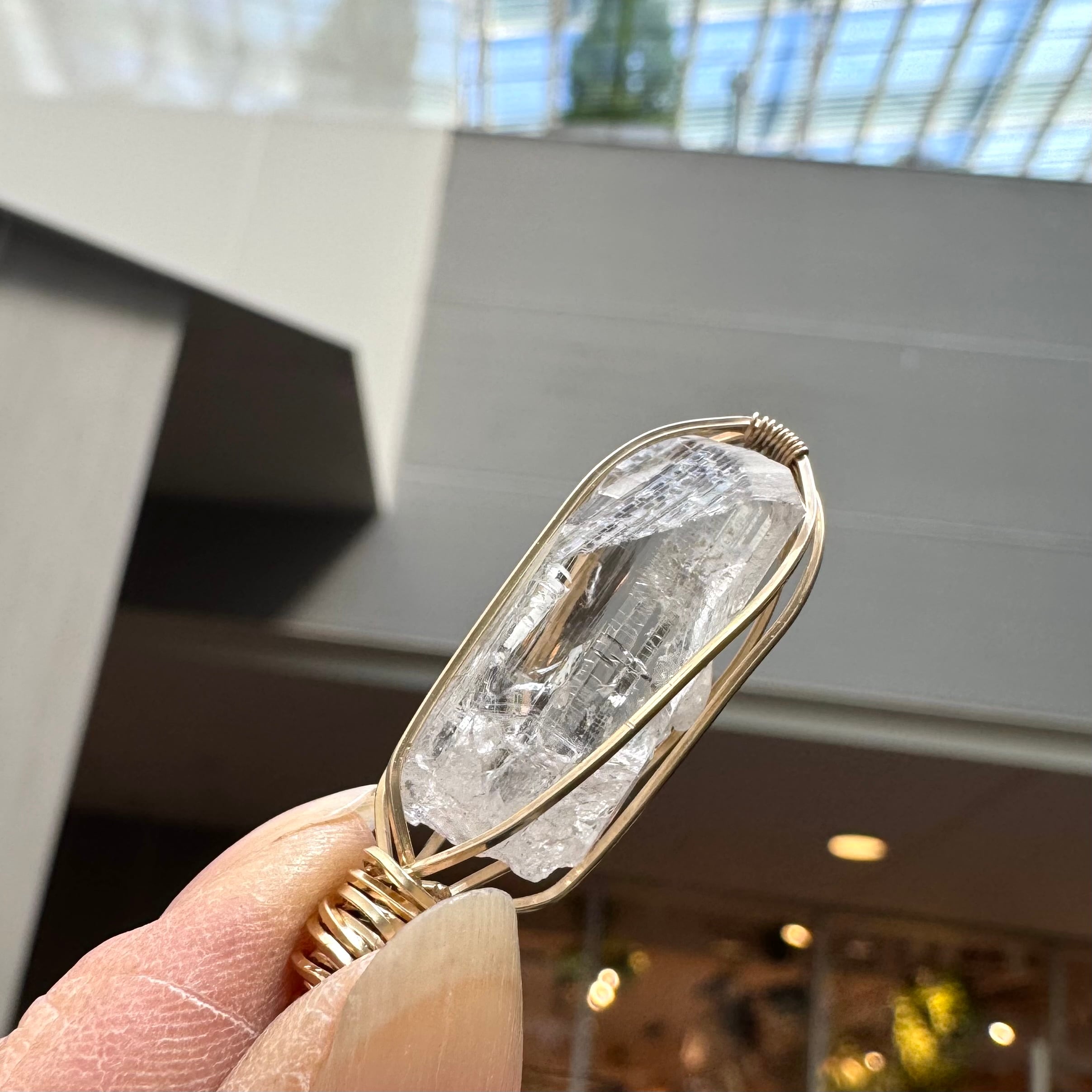 小さな原石をワイヤーで巻いたペンダントです