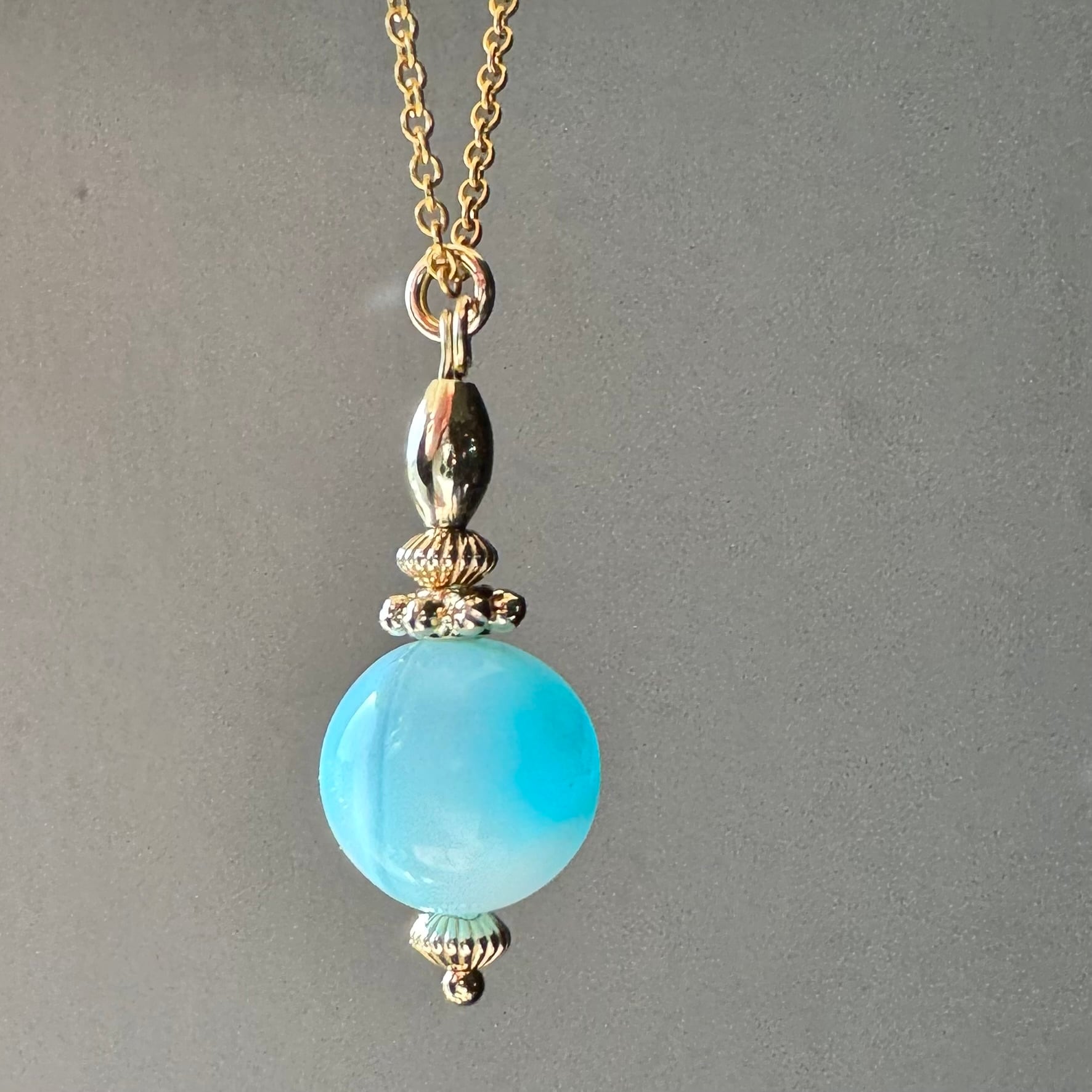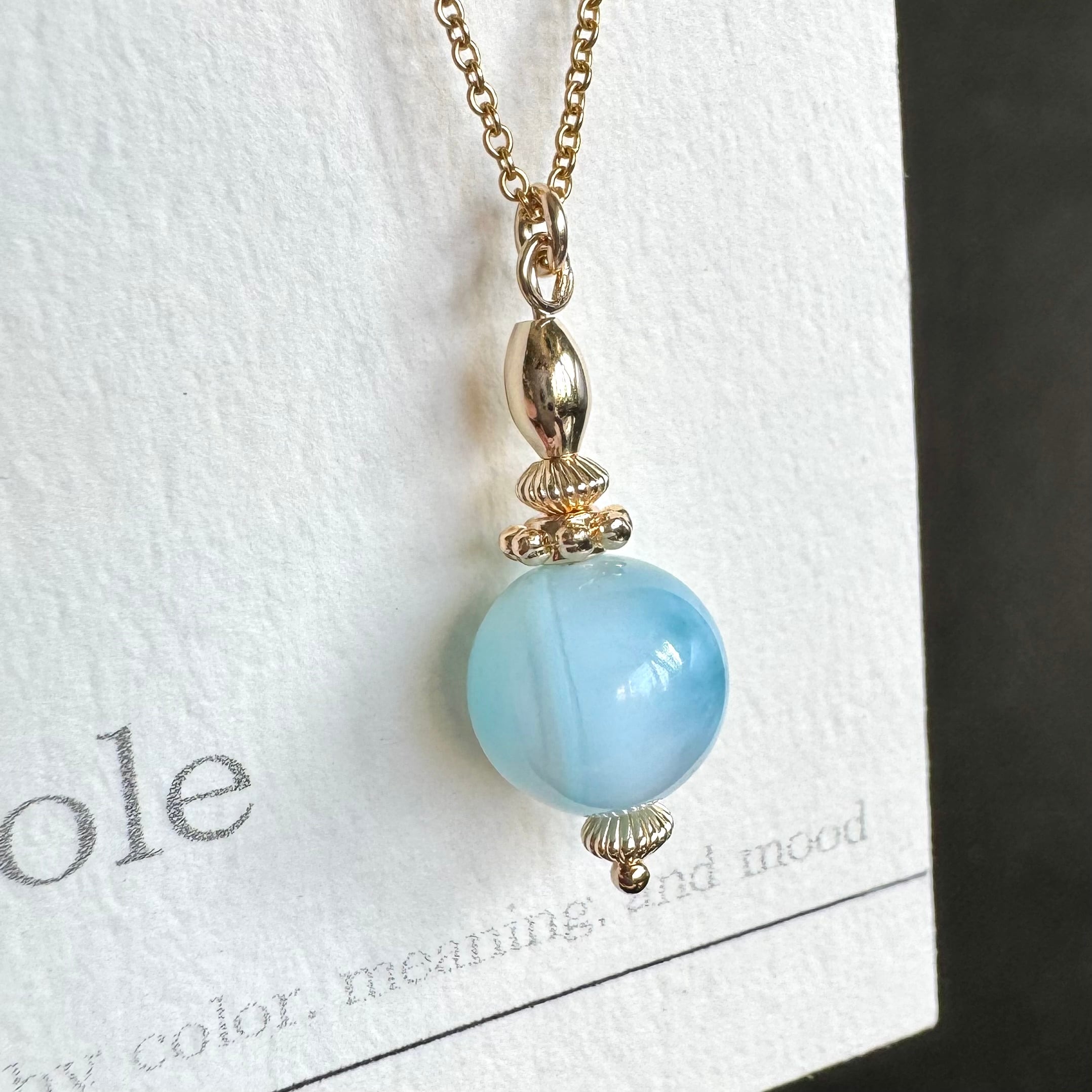 こちらのネックレスは、高品質なラリマーと、14kgfのビーズを組み合わせています