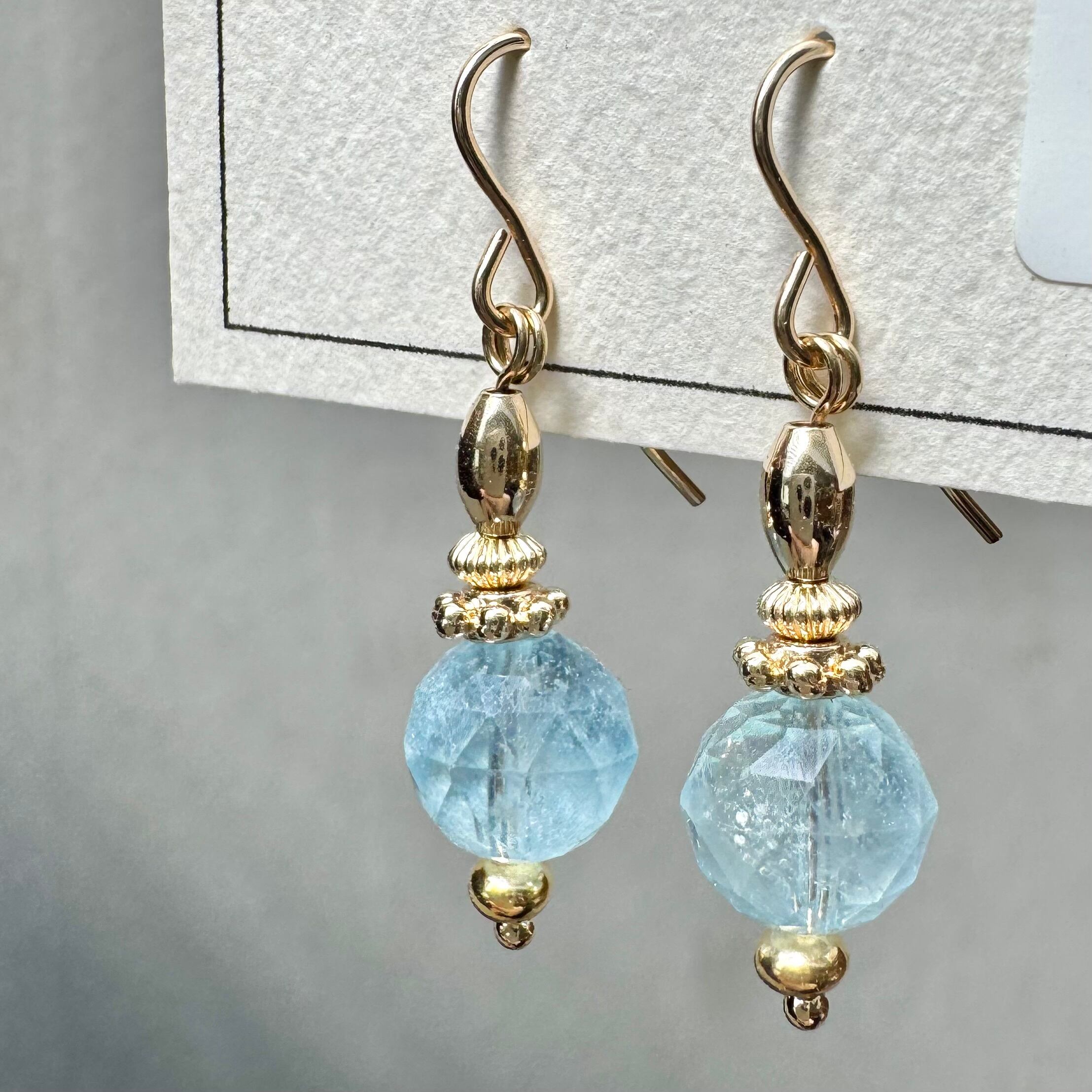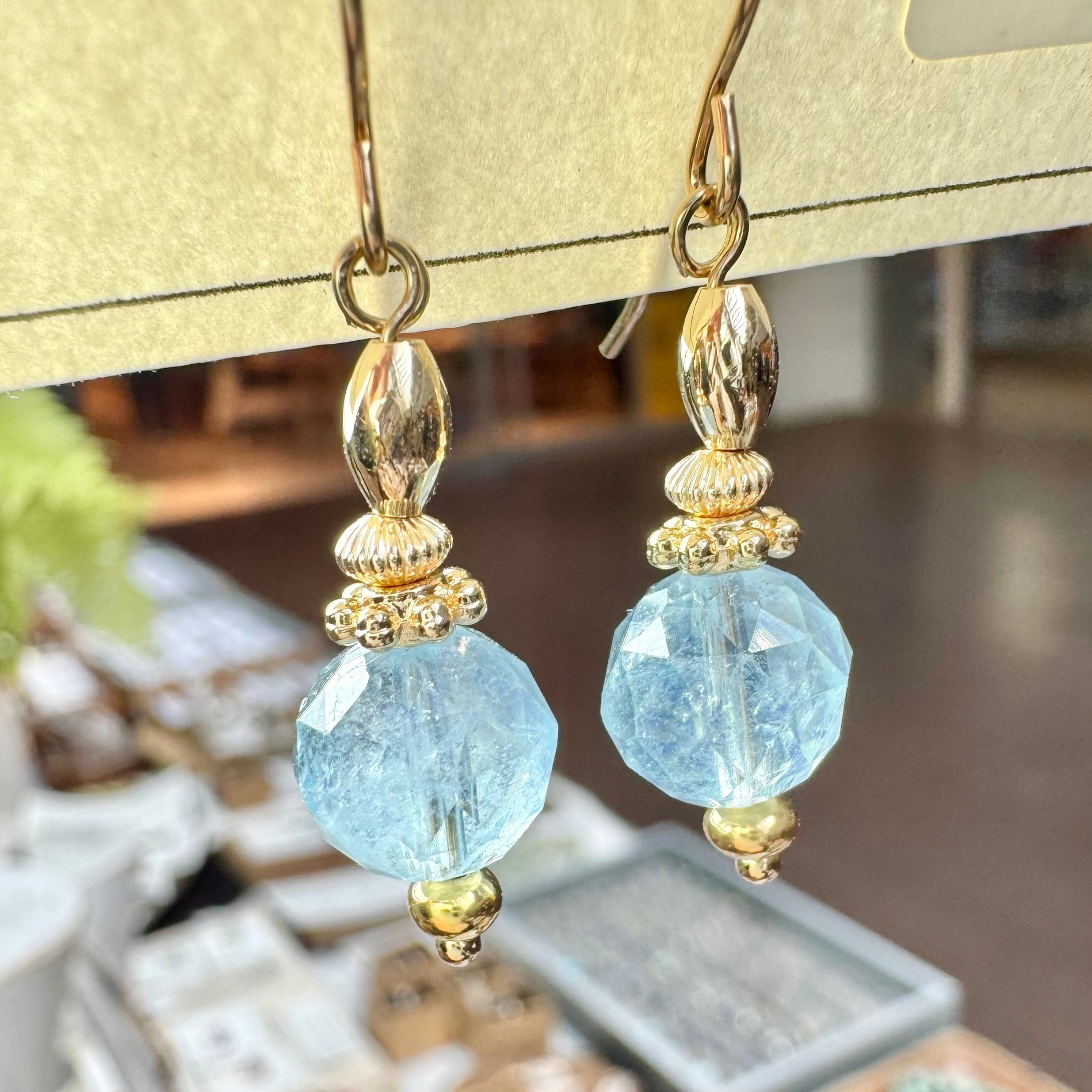 こちらのピアス(イヤリング)は、アクアマリンと14kgfのビーズを組み合わせています