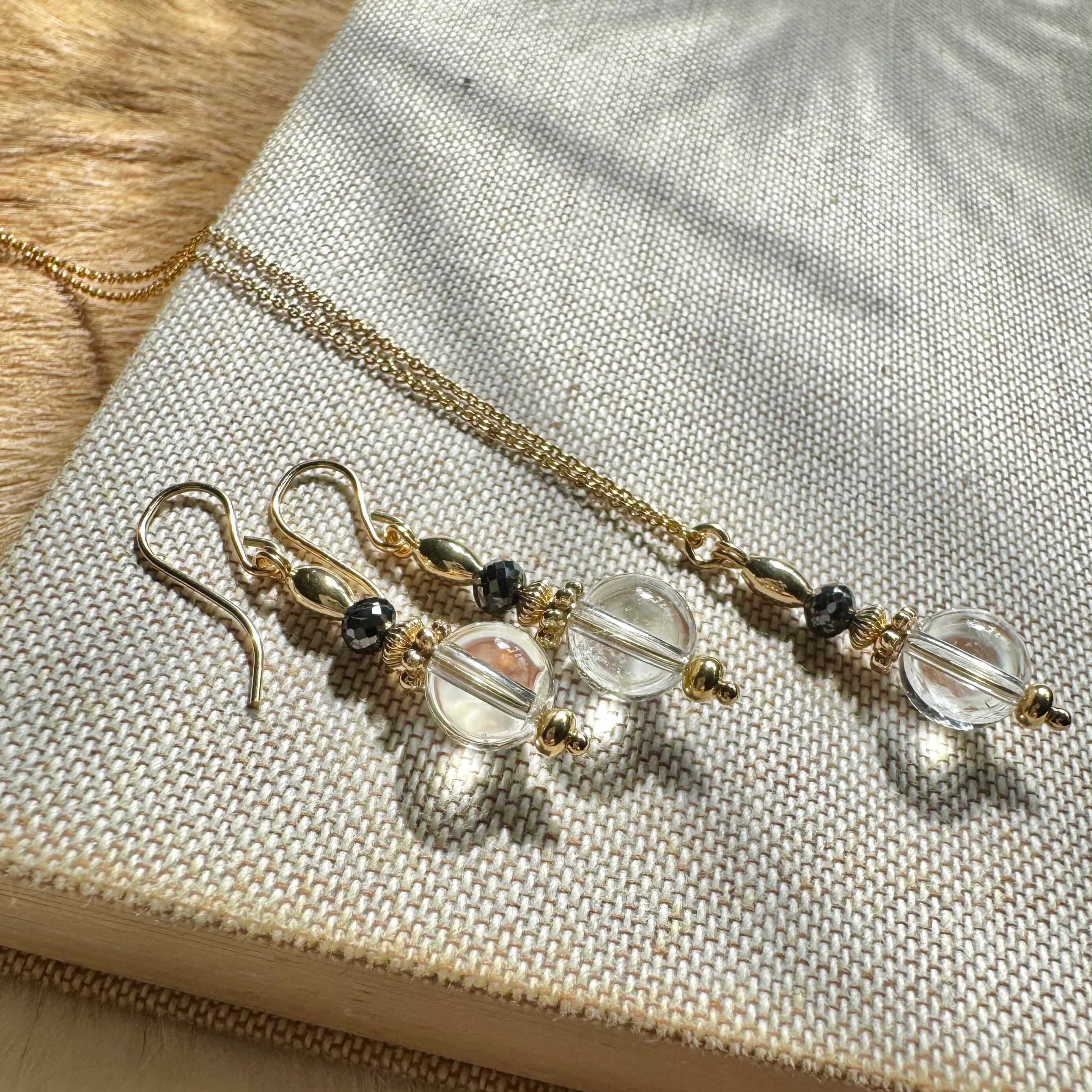 同じ石のピアスまたはイヤリングとネックレスの