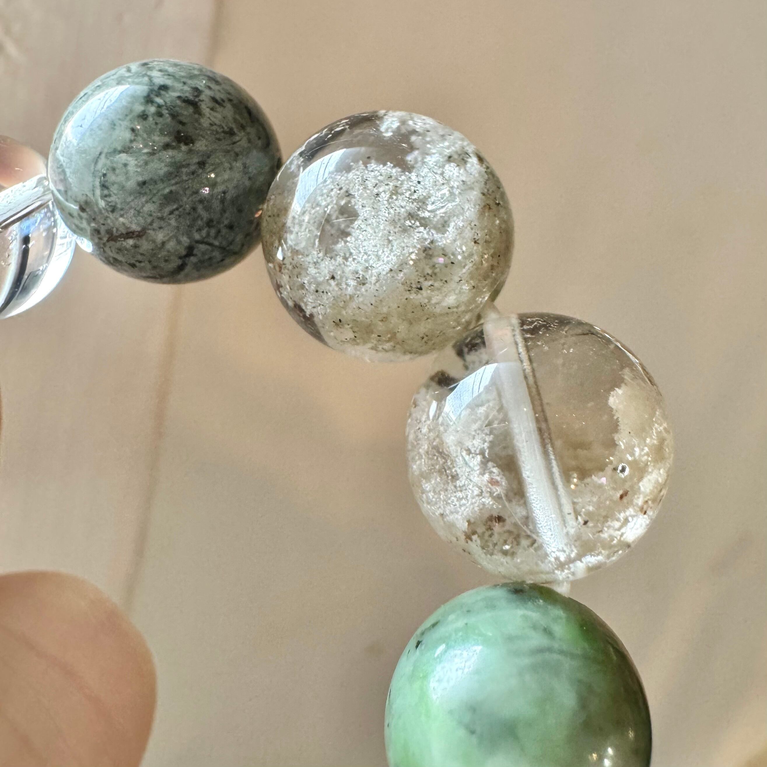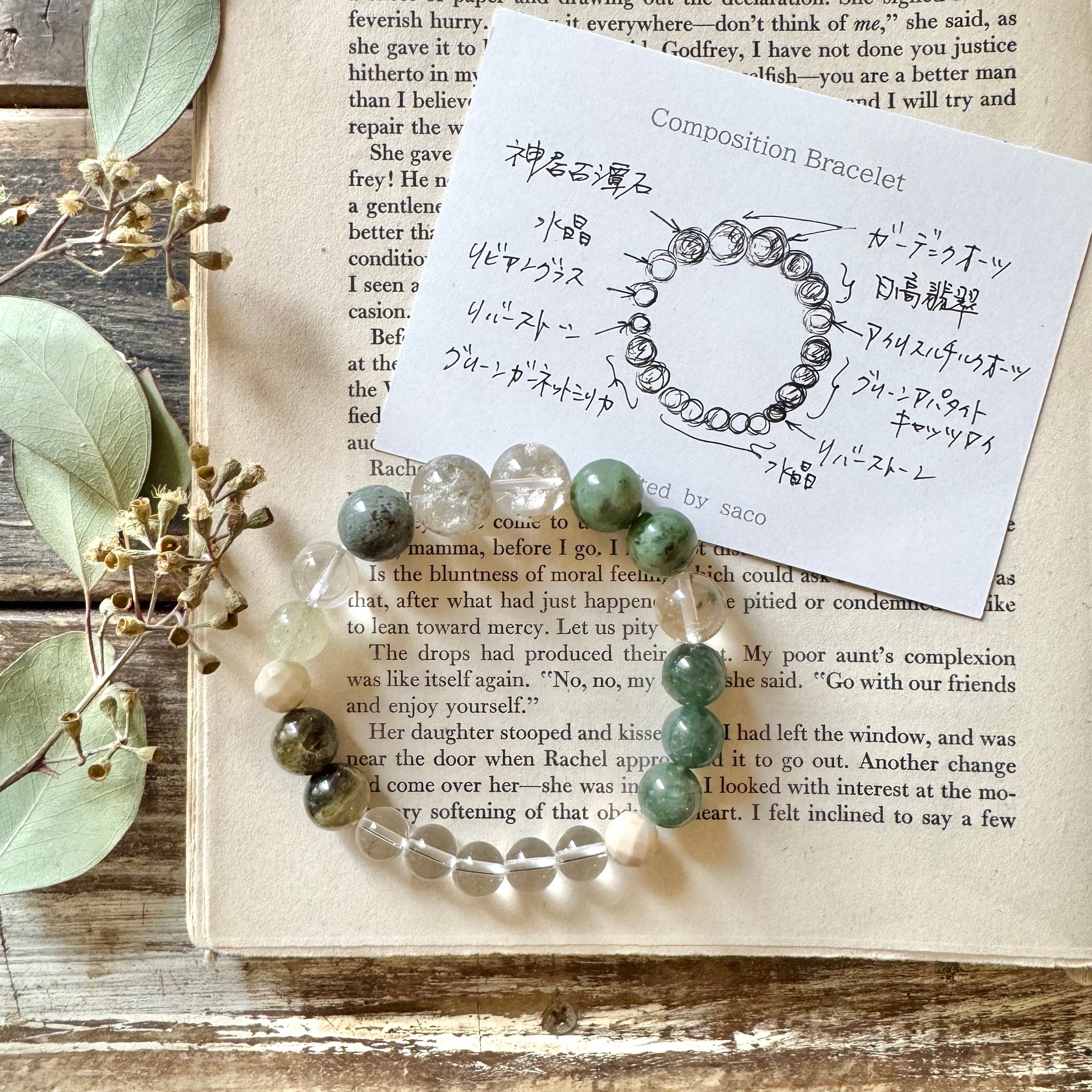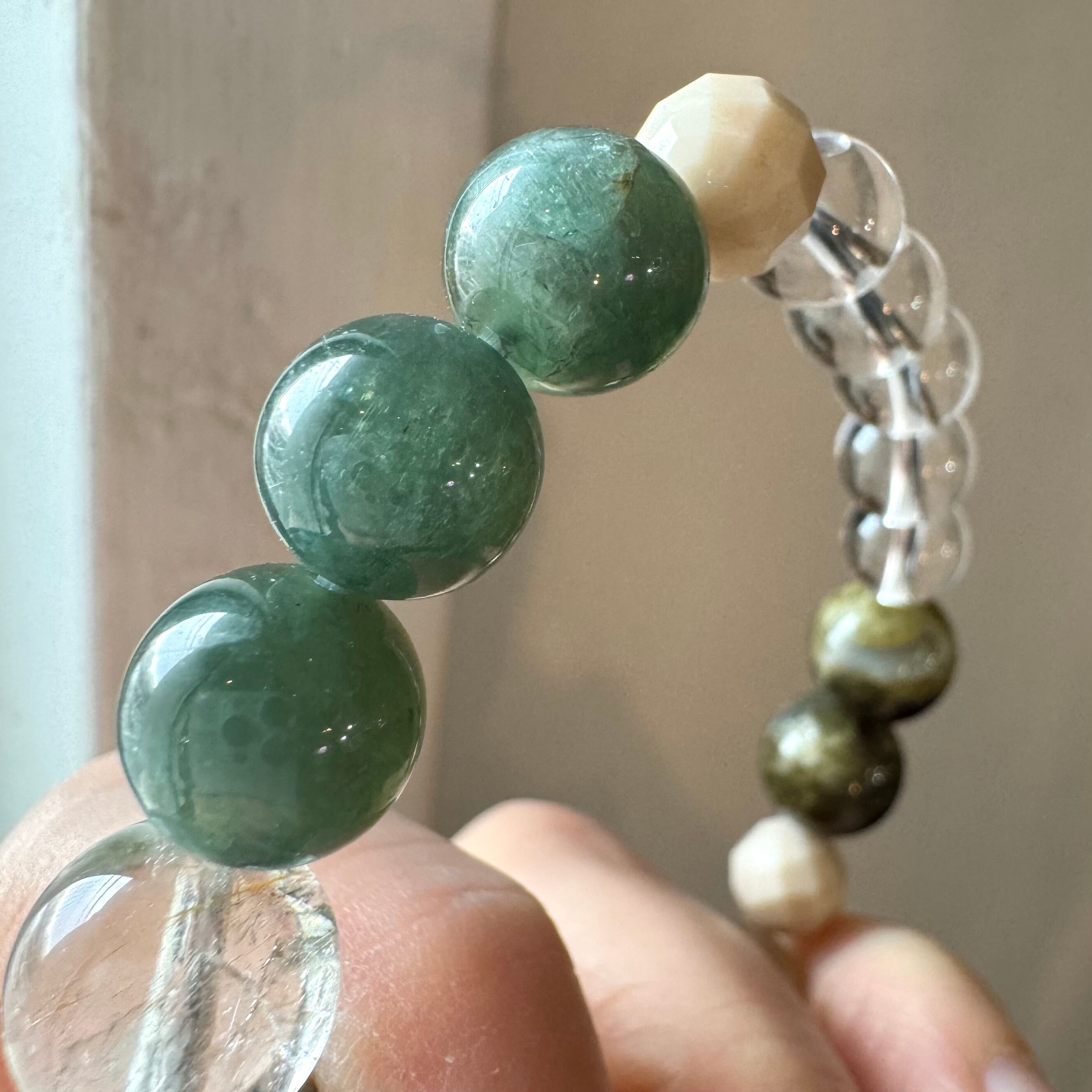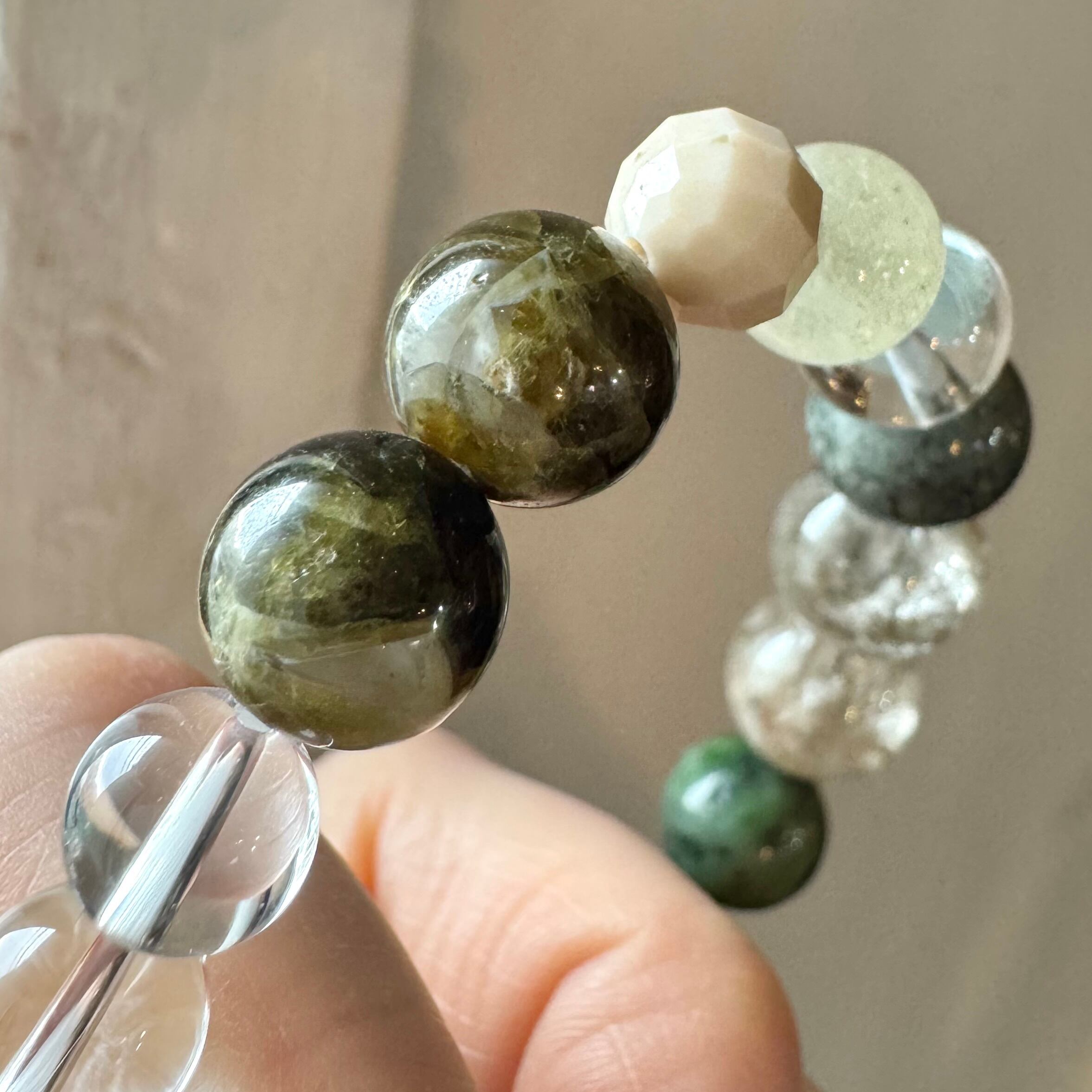 【コンポジションブレスレット】男性にもおすすめ‼︎ガーデンクオーツ&日高翡翠&神居古潭石