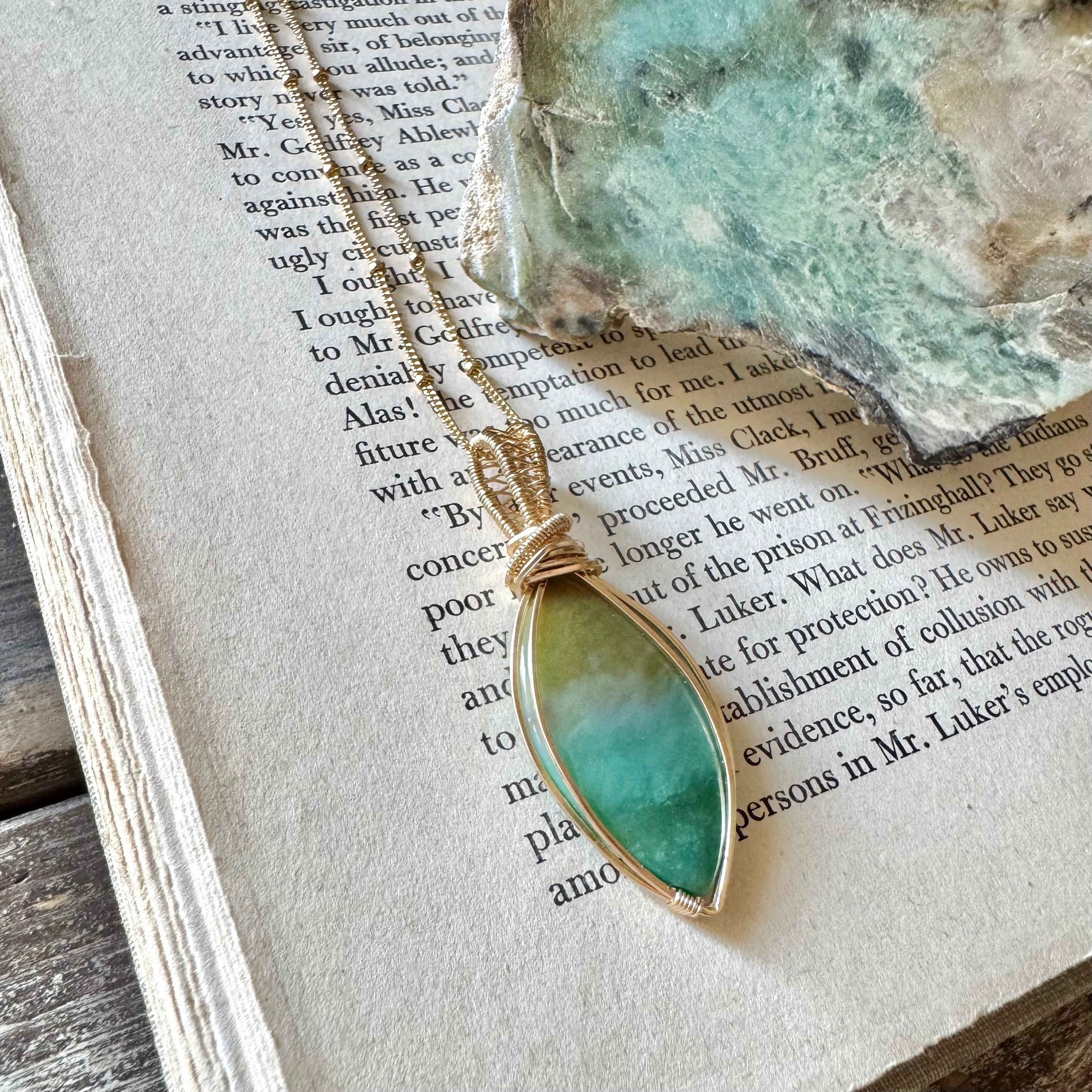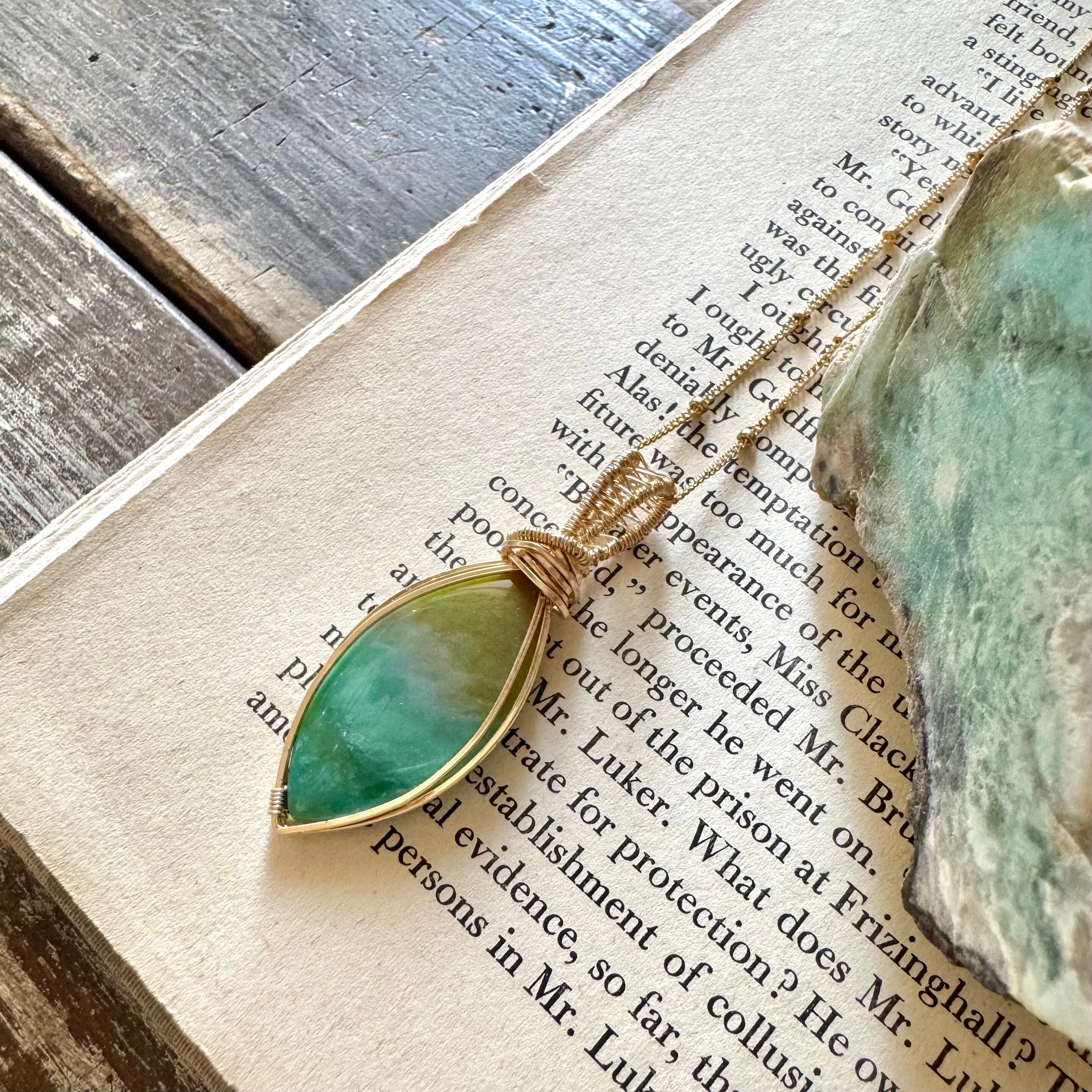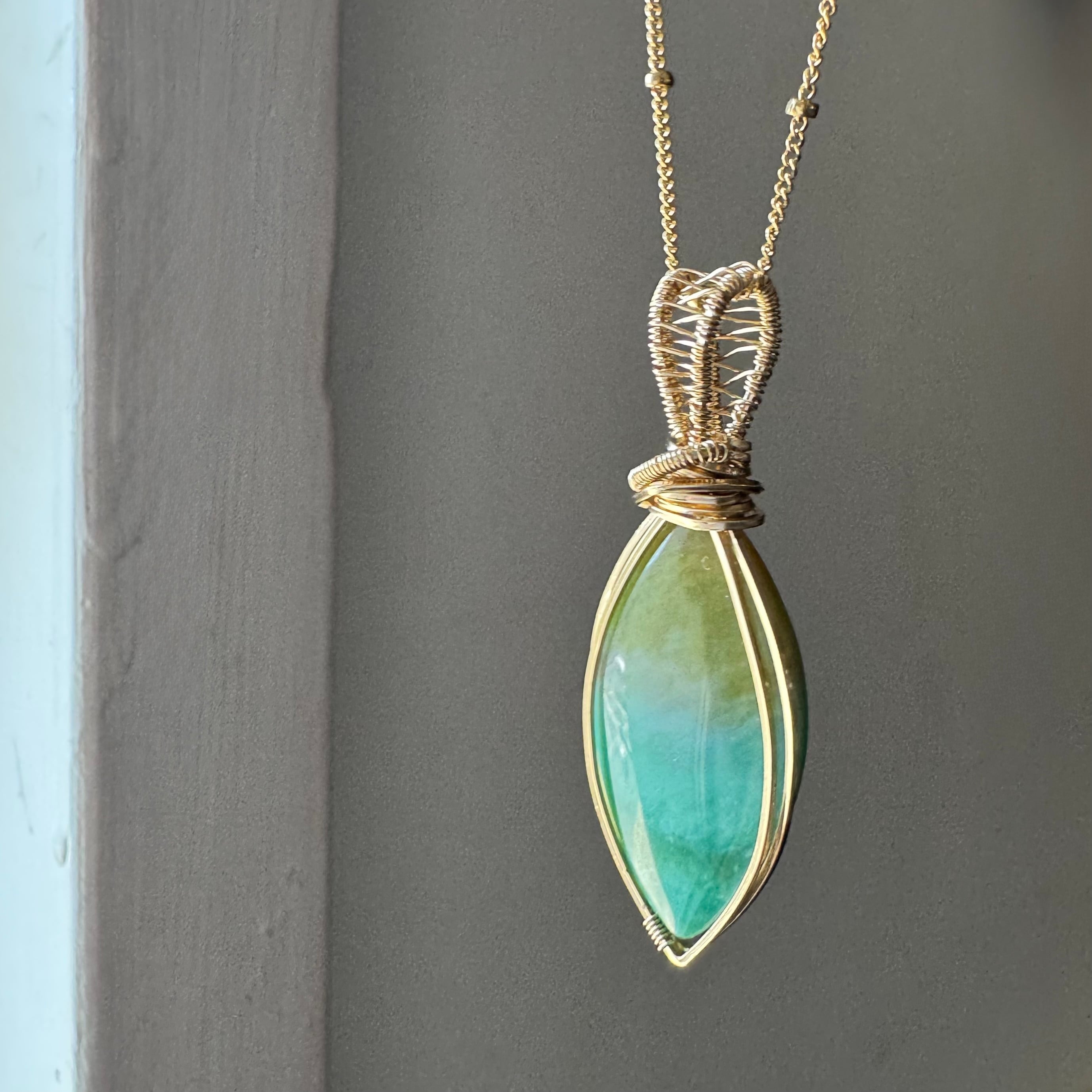 こちらは、ブルーグリーンからグリーンへのグラデーションになっている粒のネックレスです