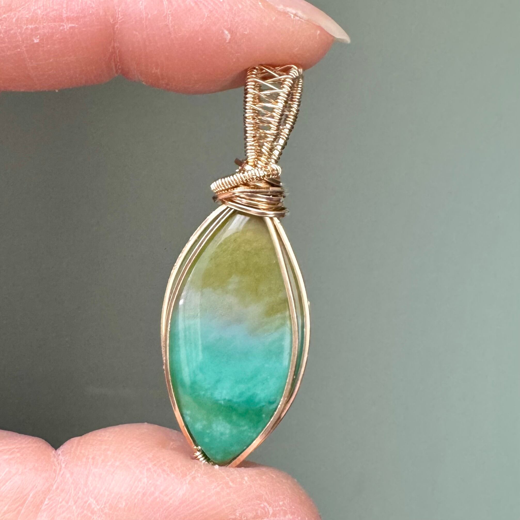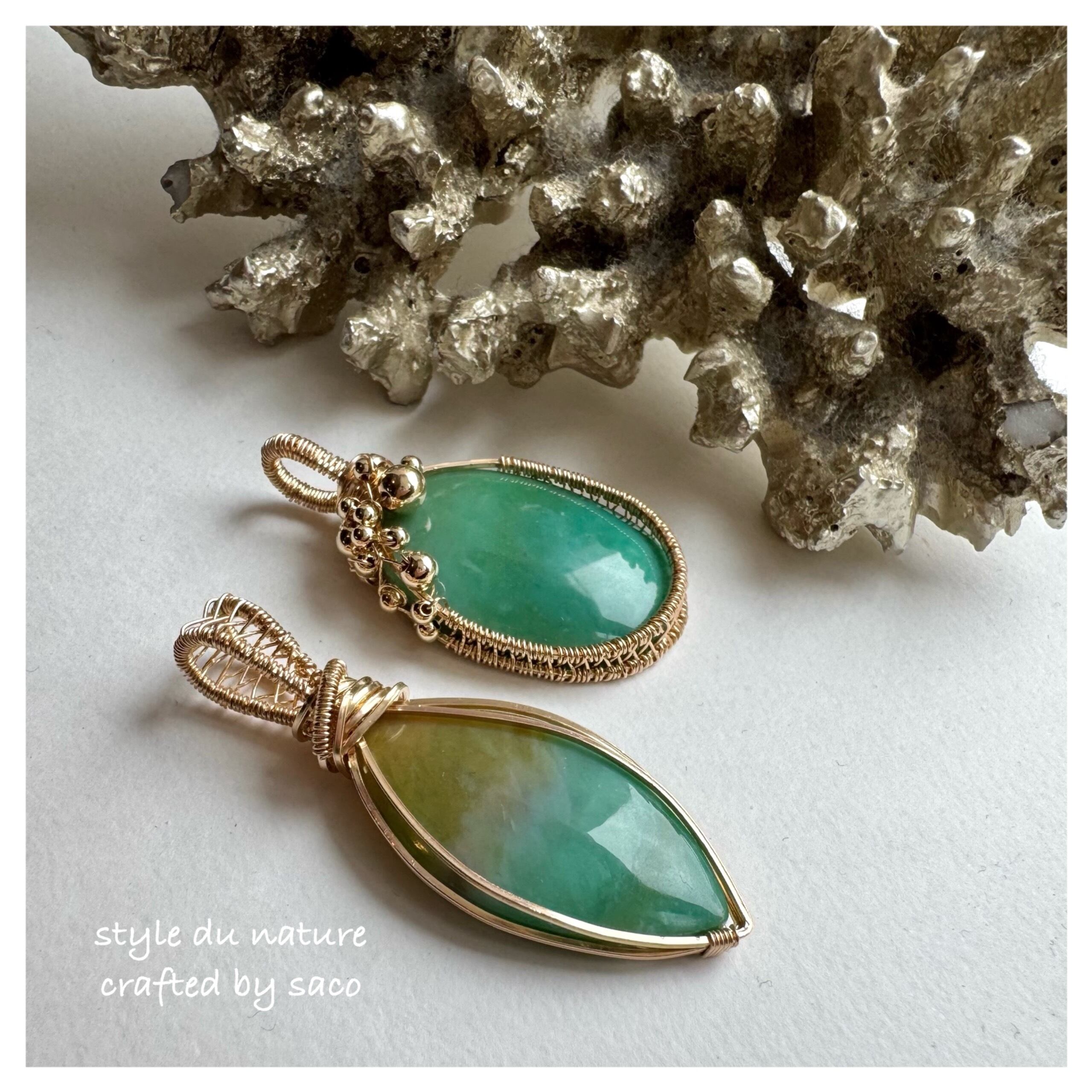 グラデーションが美しいので、シンプルめのワイヤーラッピングにしました