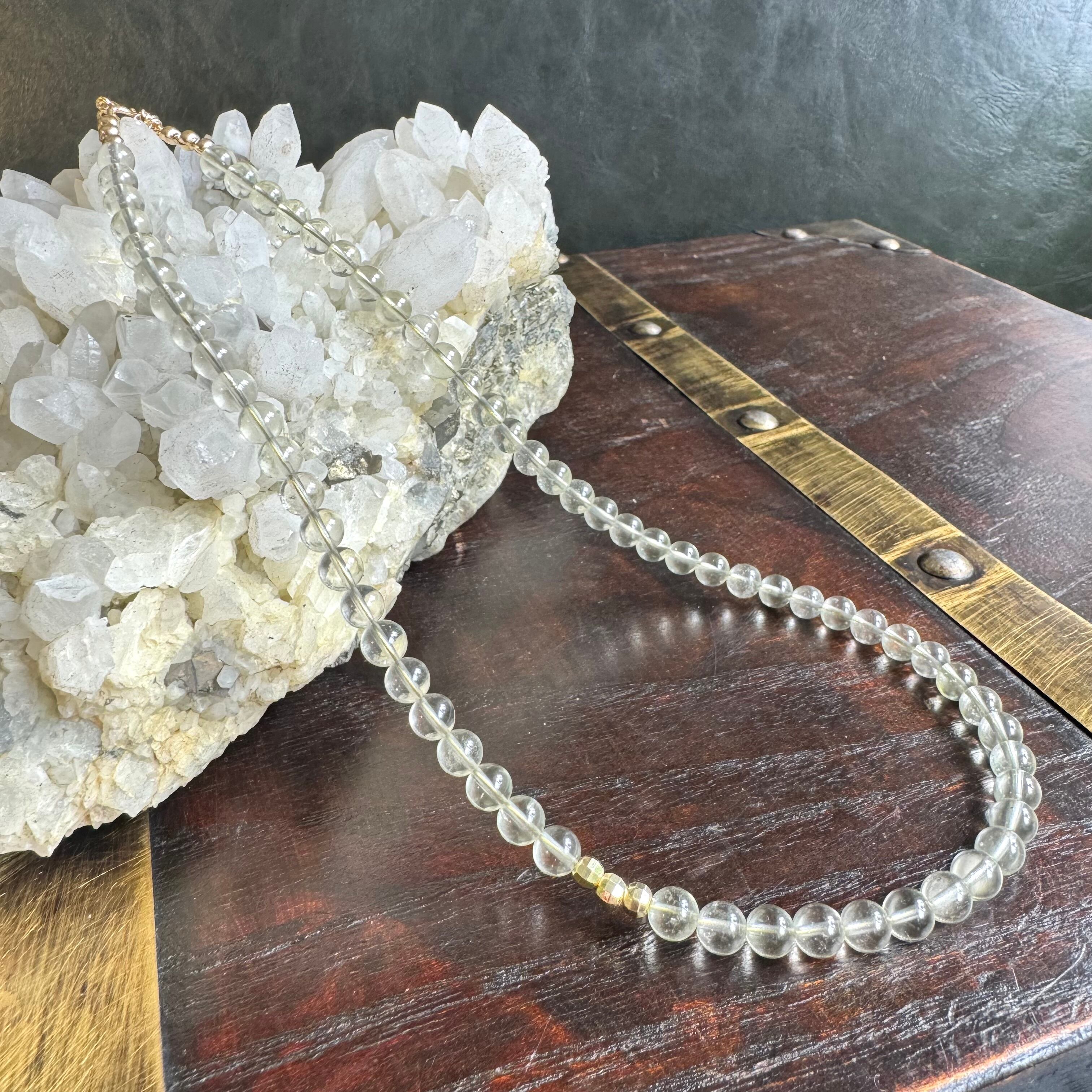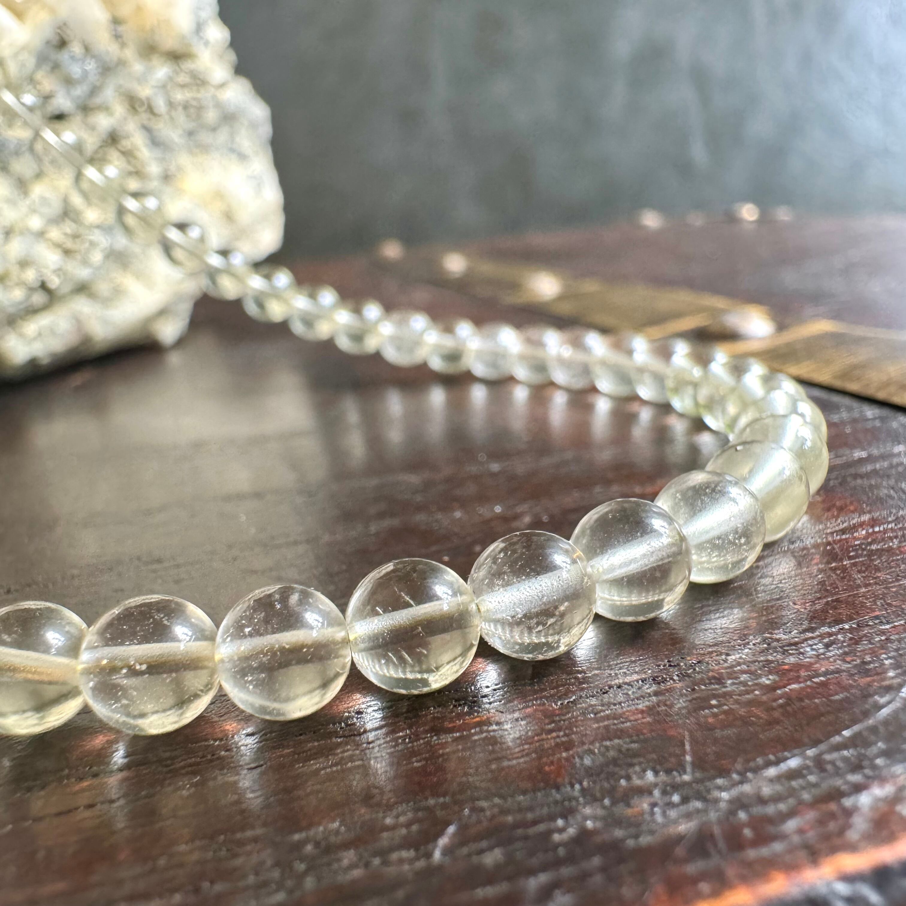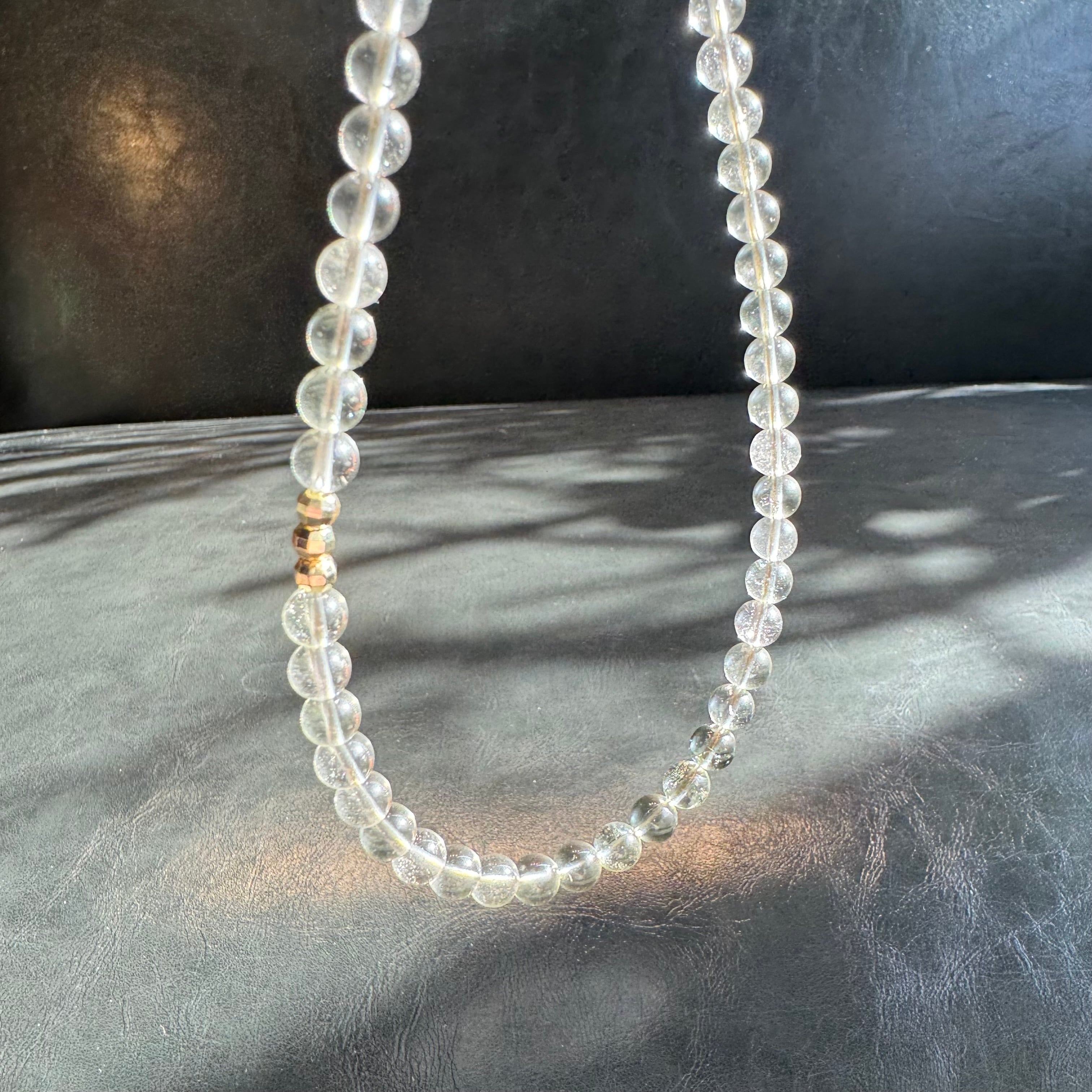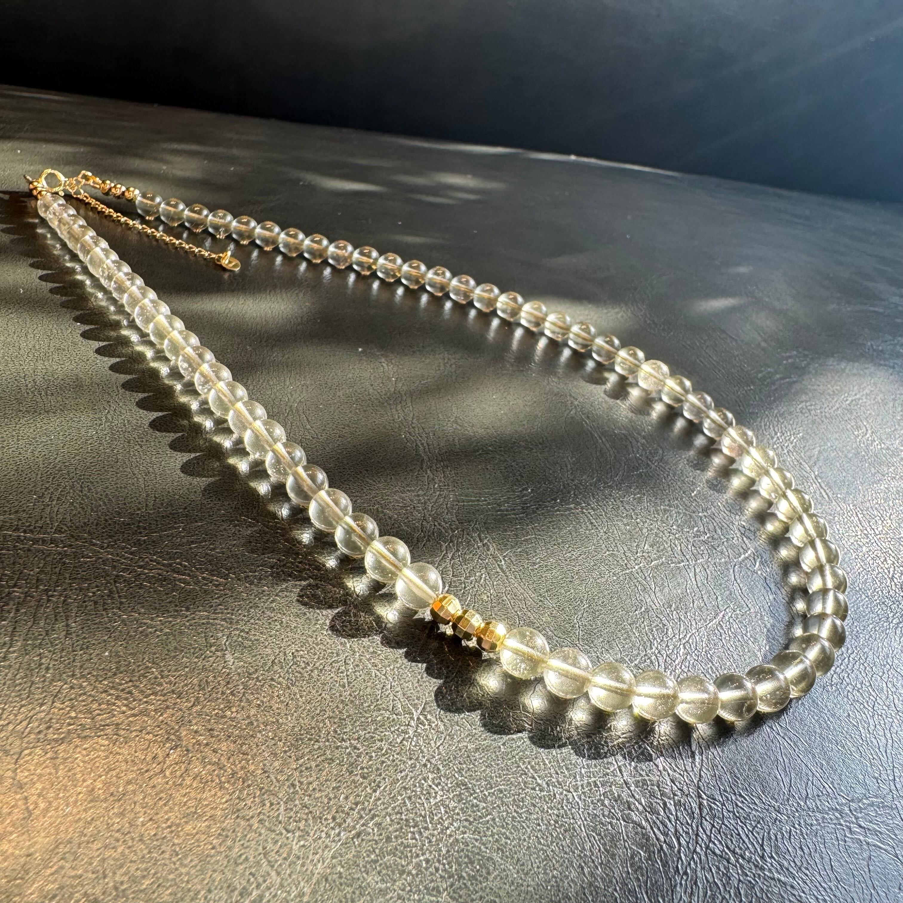 丸玉のリビアングラスだけを使ったシンプルなもので、ワンポイントでビーズをアシメの位置に配置しています