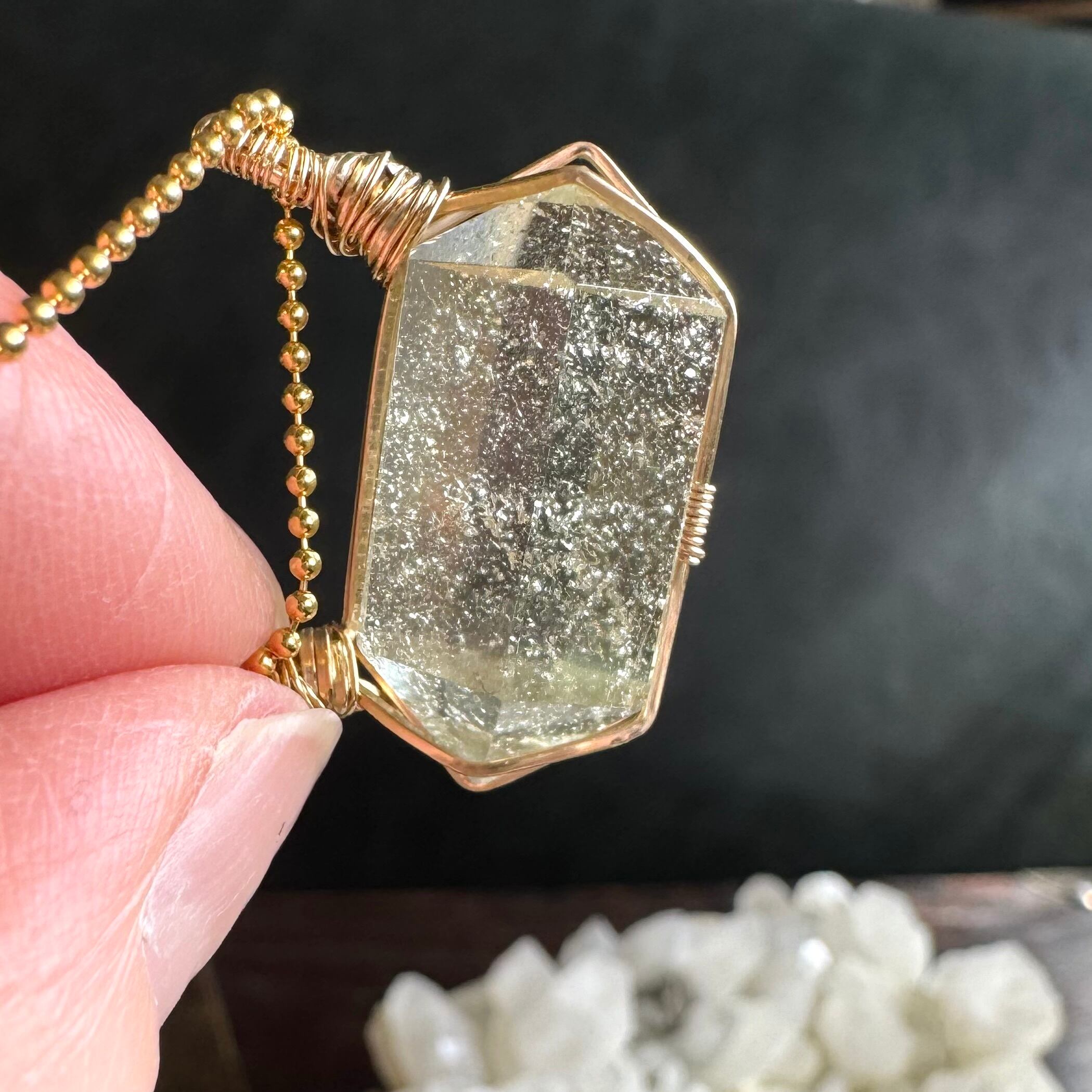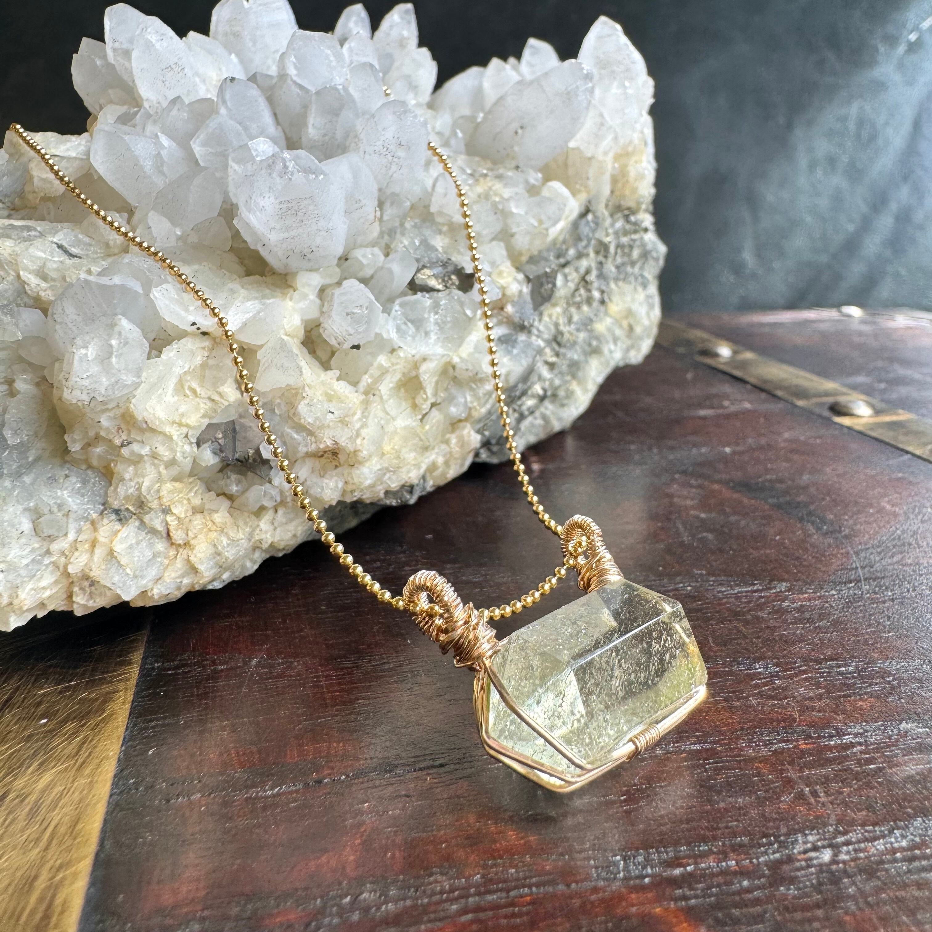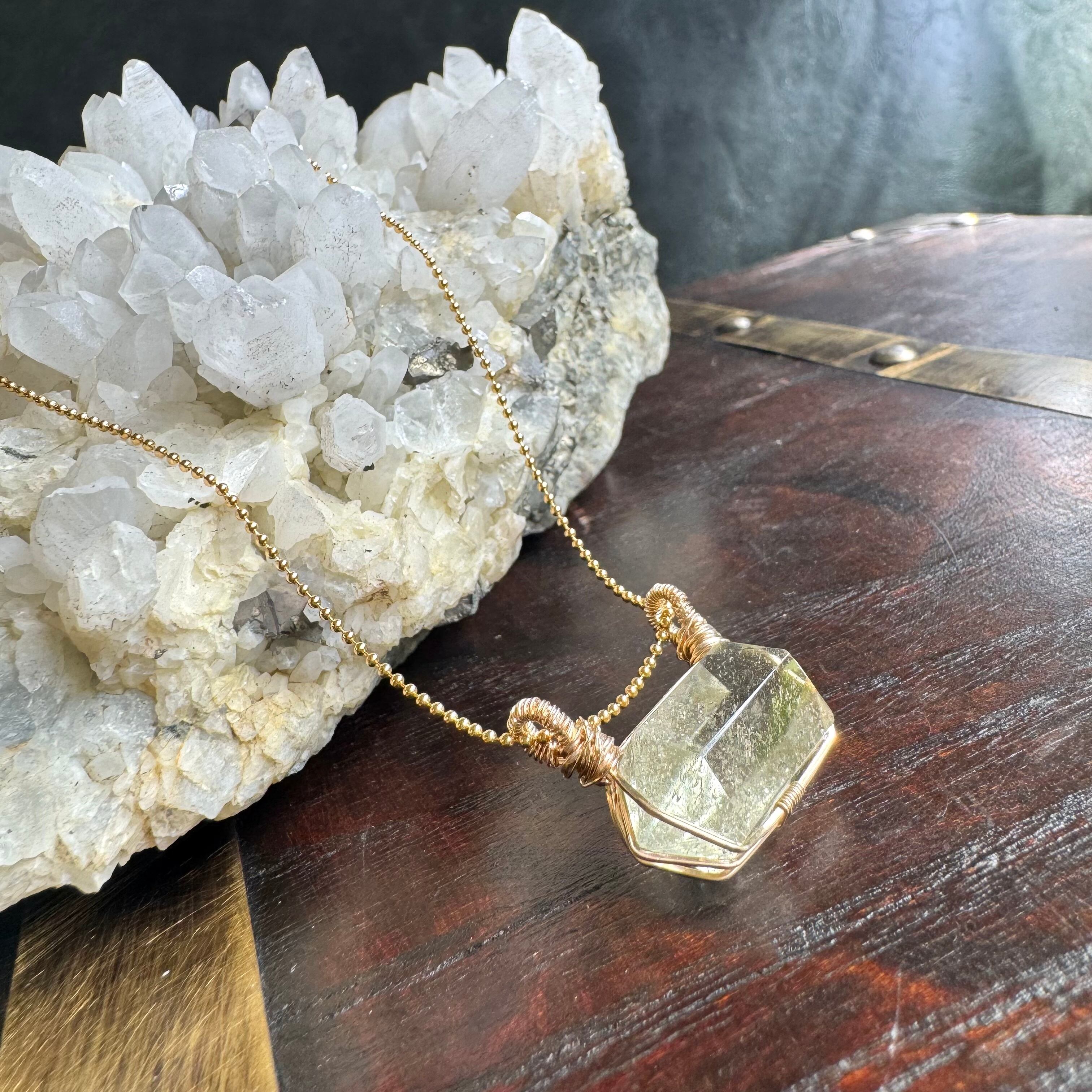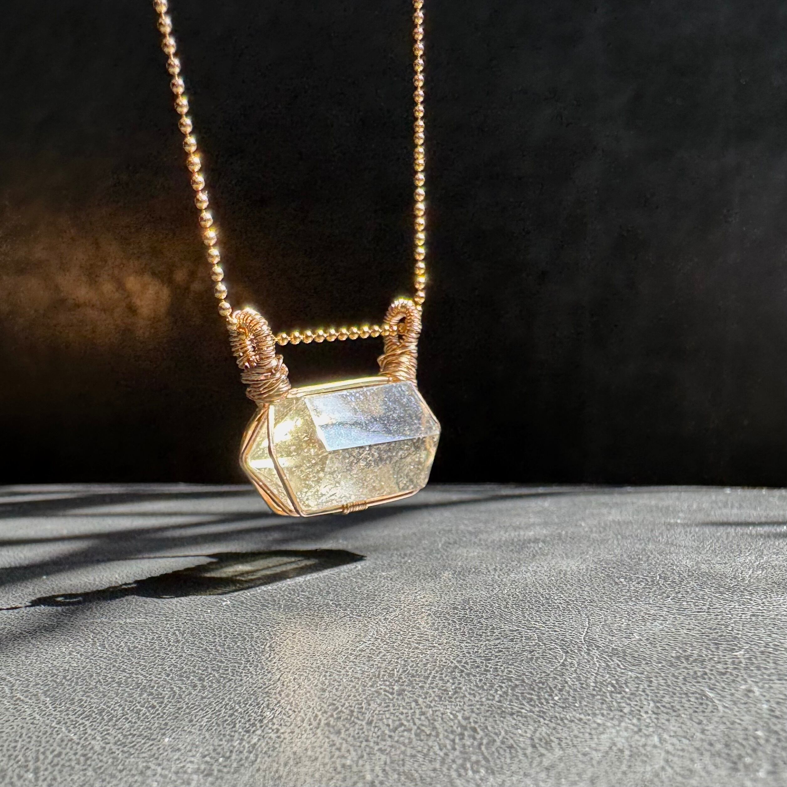 小さな原石をワイヤーで巻いたペンダントです