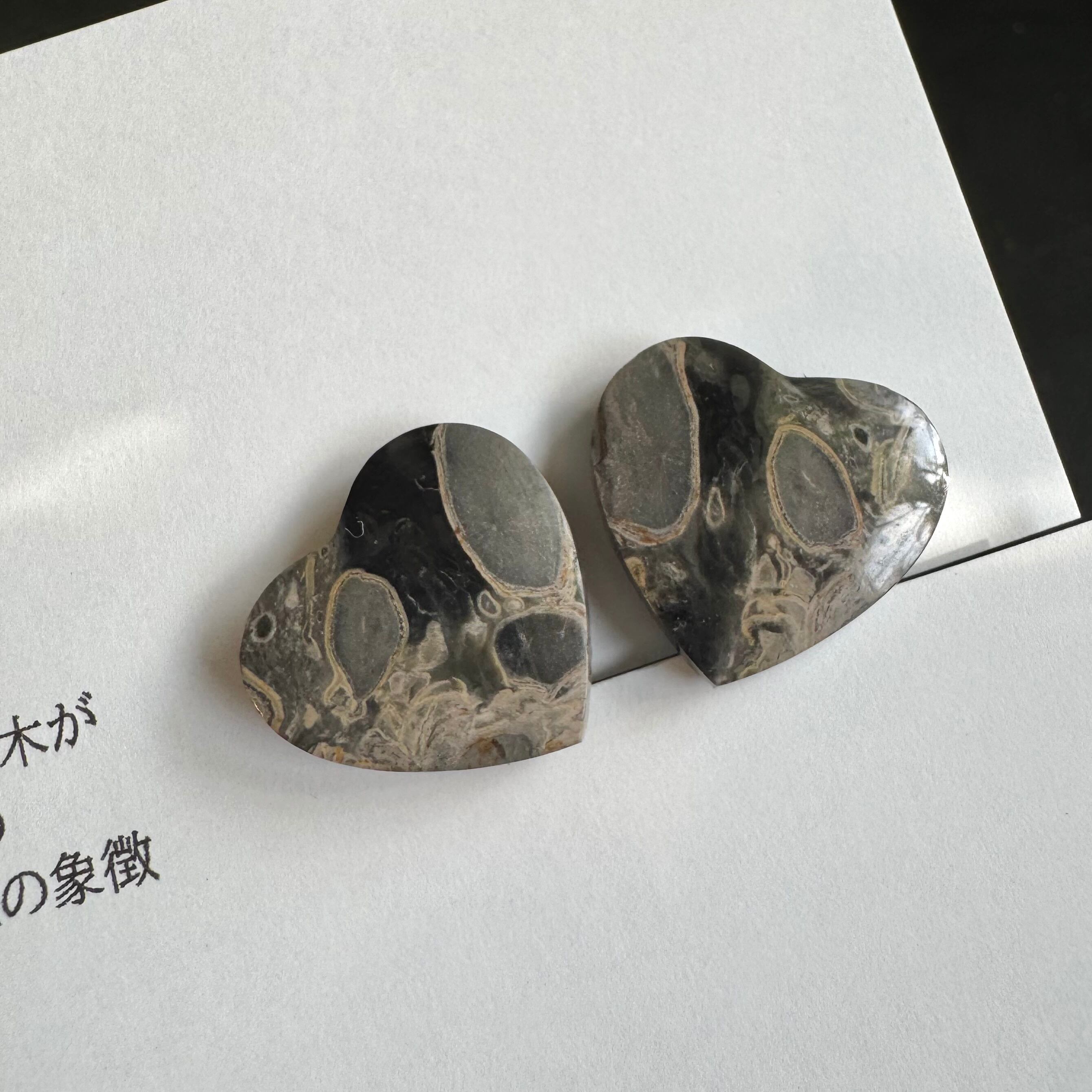 パームルートフォッシル*1粒イヤリング・グレーハート型(ピアス不可)