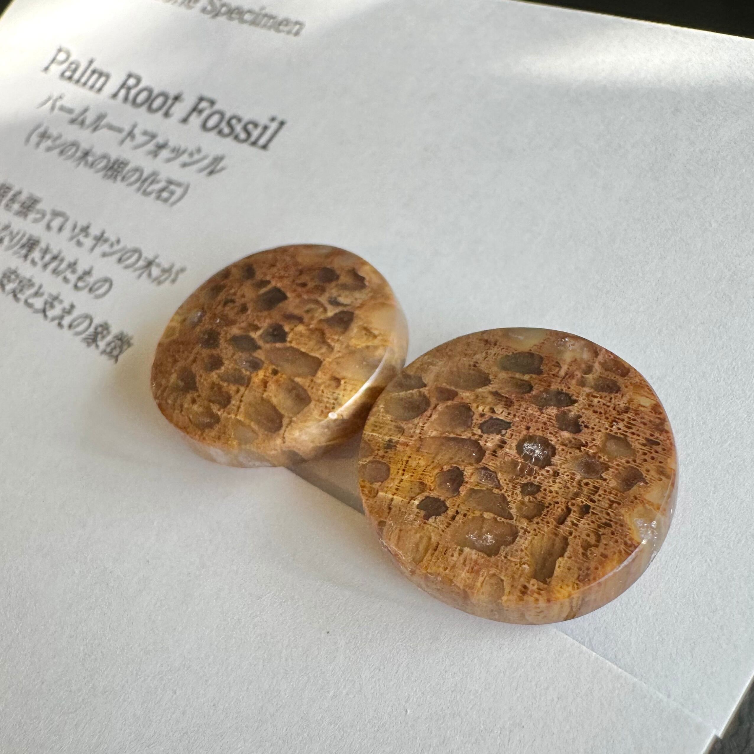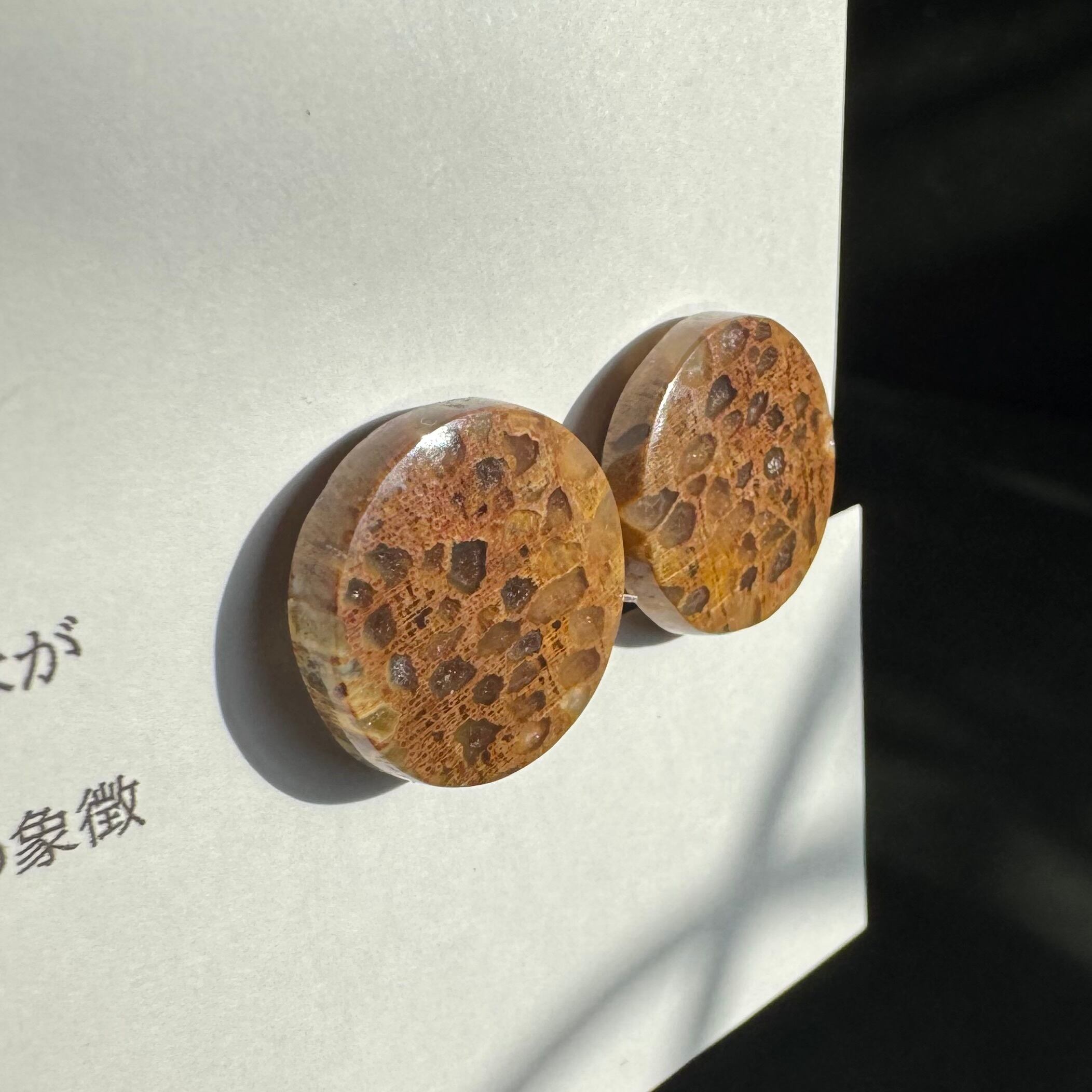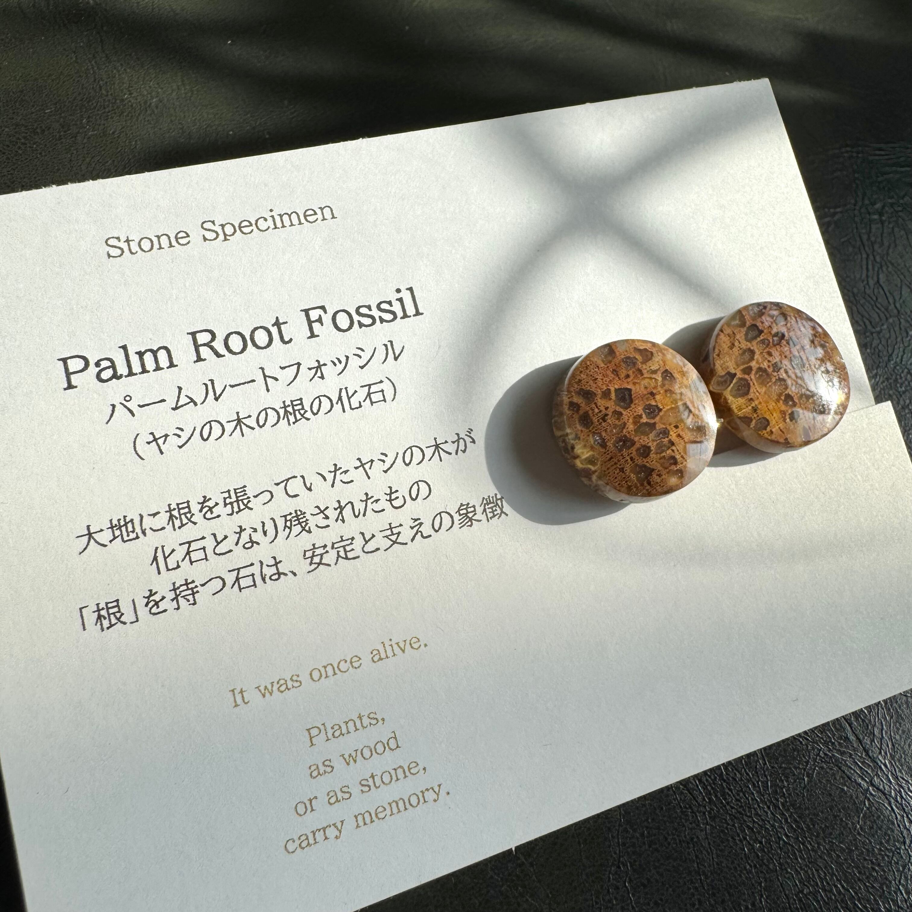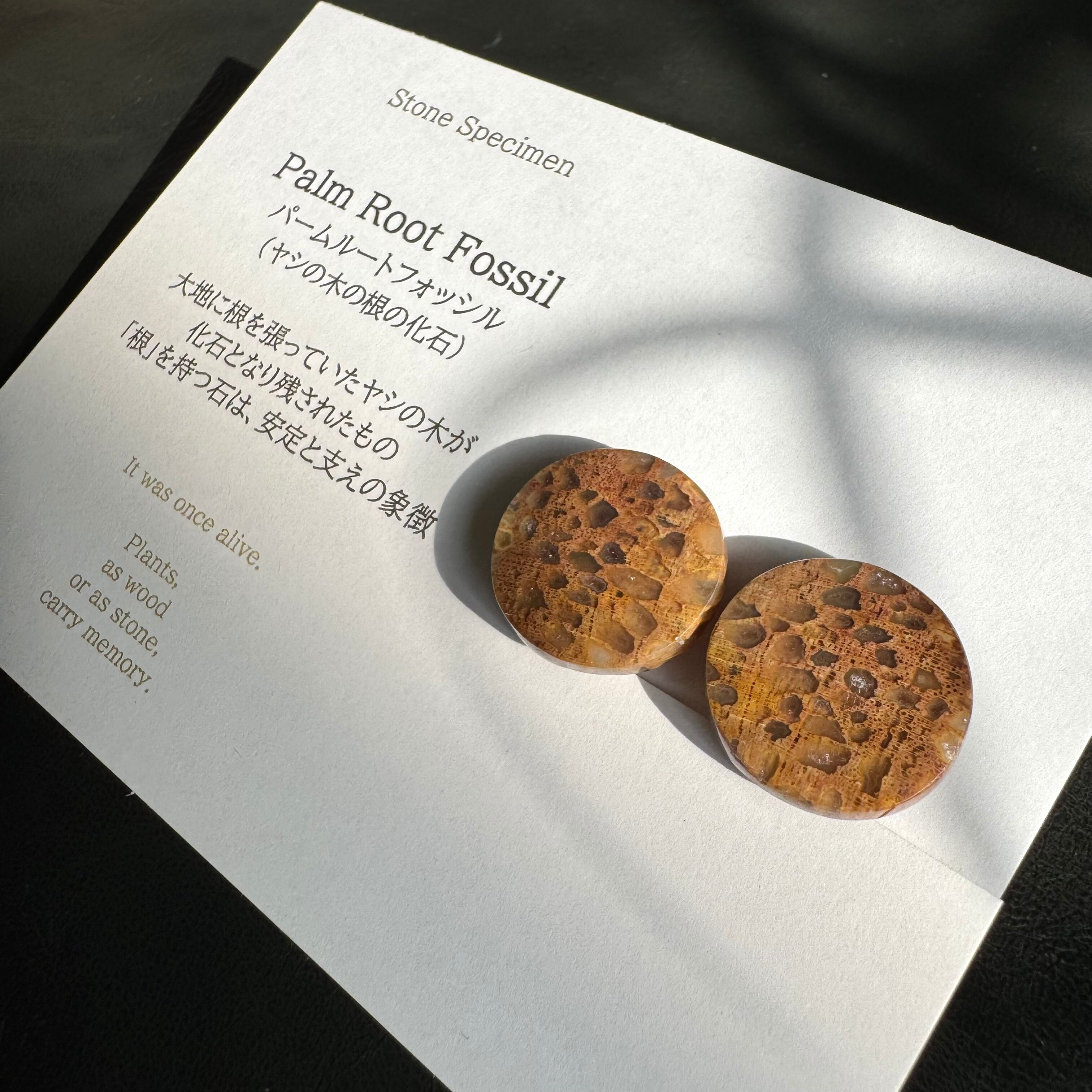 パームルートフォッシル*1粒イヤリング・ブラウン丸型(ピアス不可)