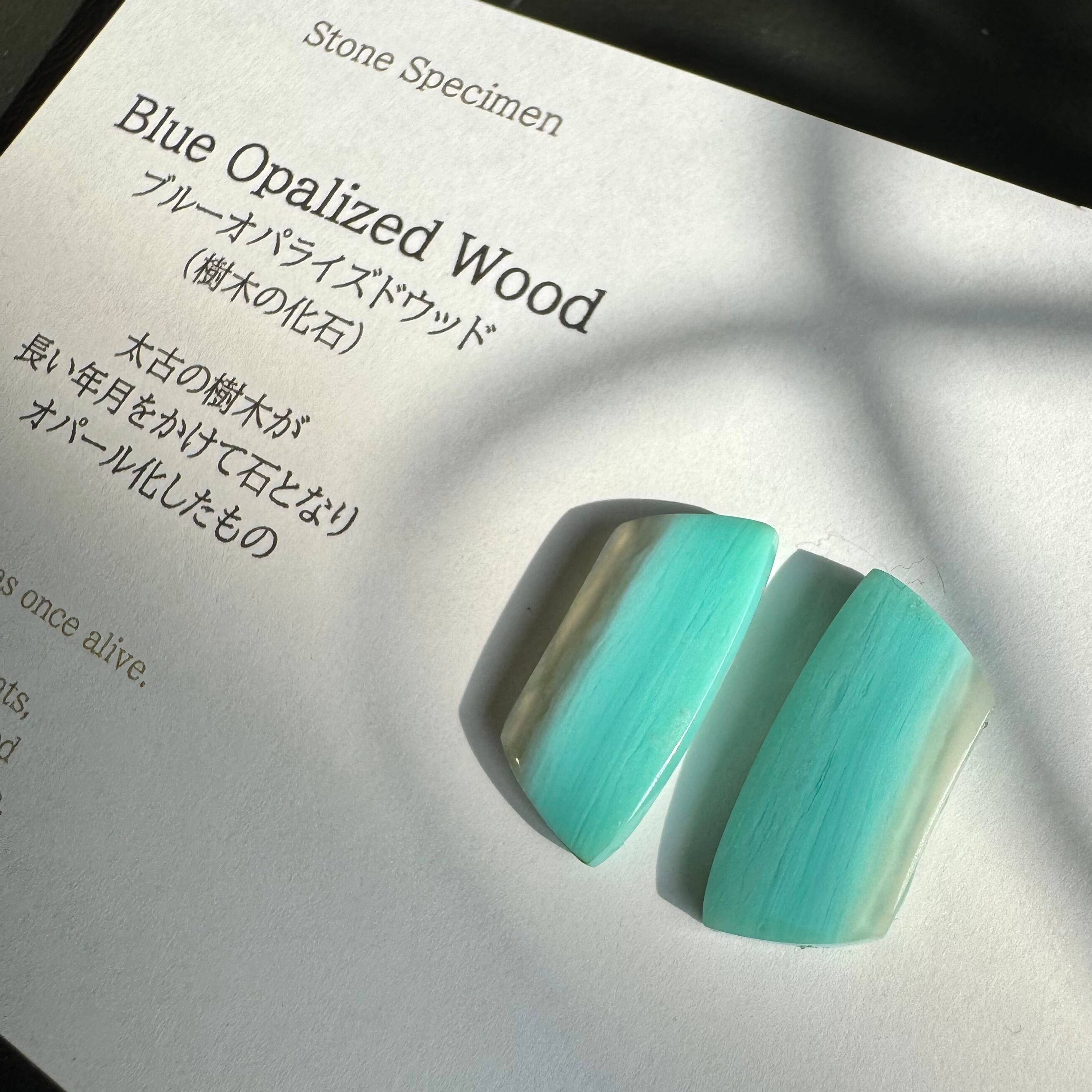 【樹木の化石】ブルーオパライズドウッド*1粒ピアス*変形ブルー(イヤリング不可)