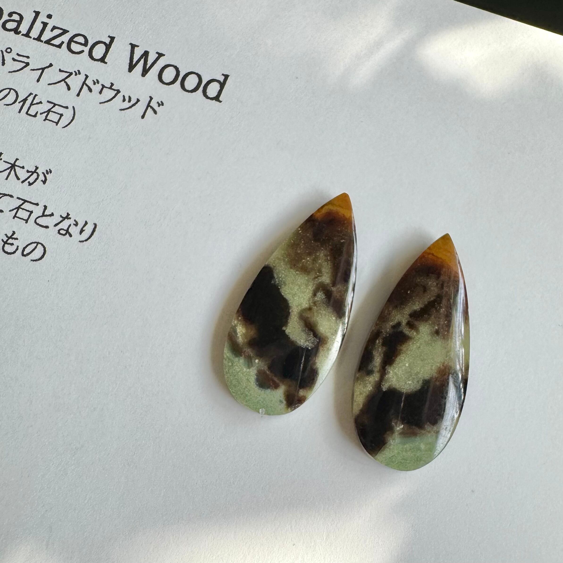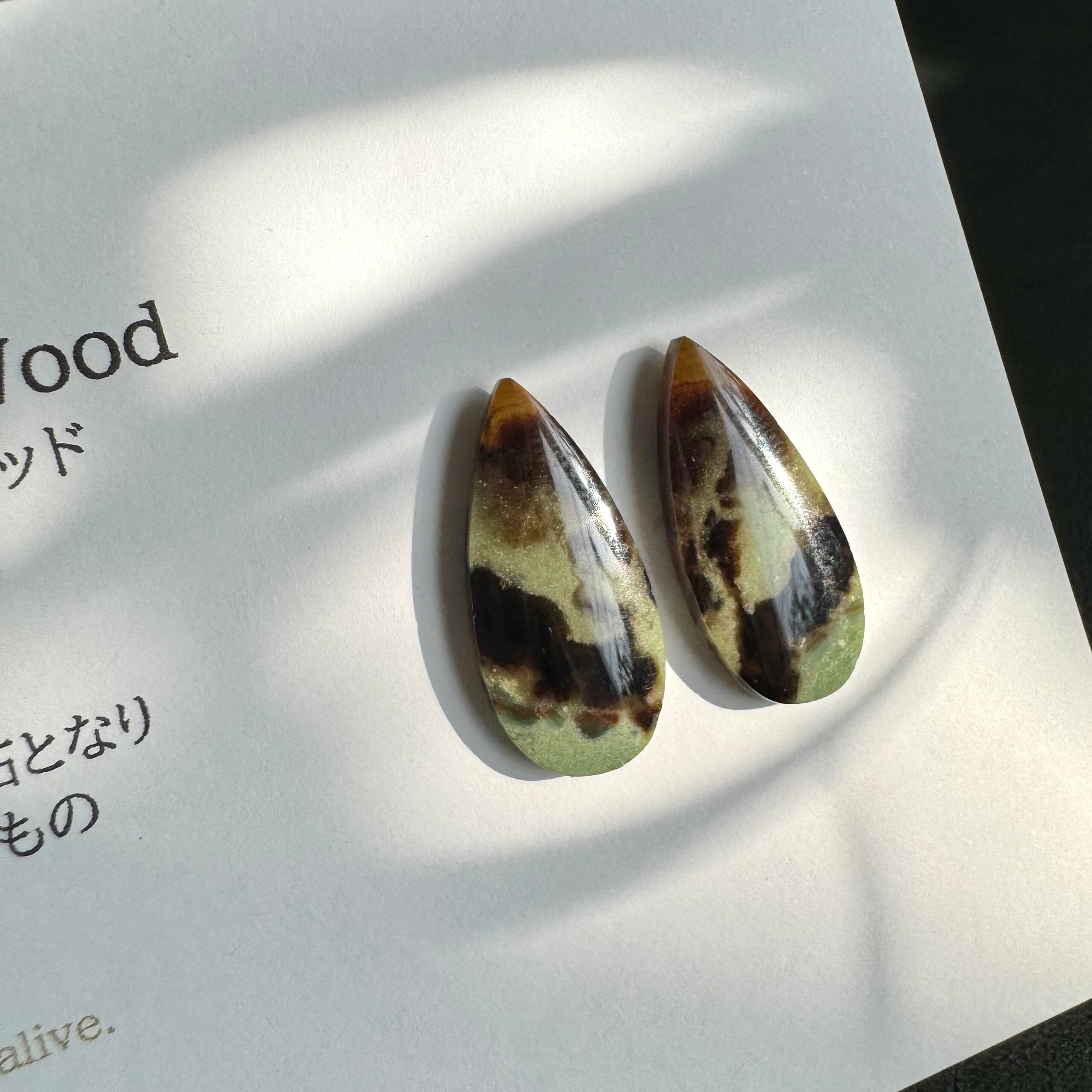 【樹木の化石】ブルーオパライズドウッド*1粒ピアス*カーキ&ブラウン(イヤリング不可)