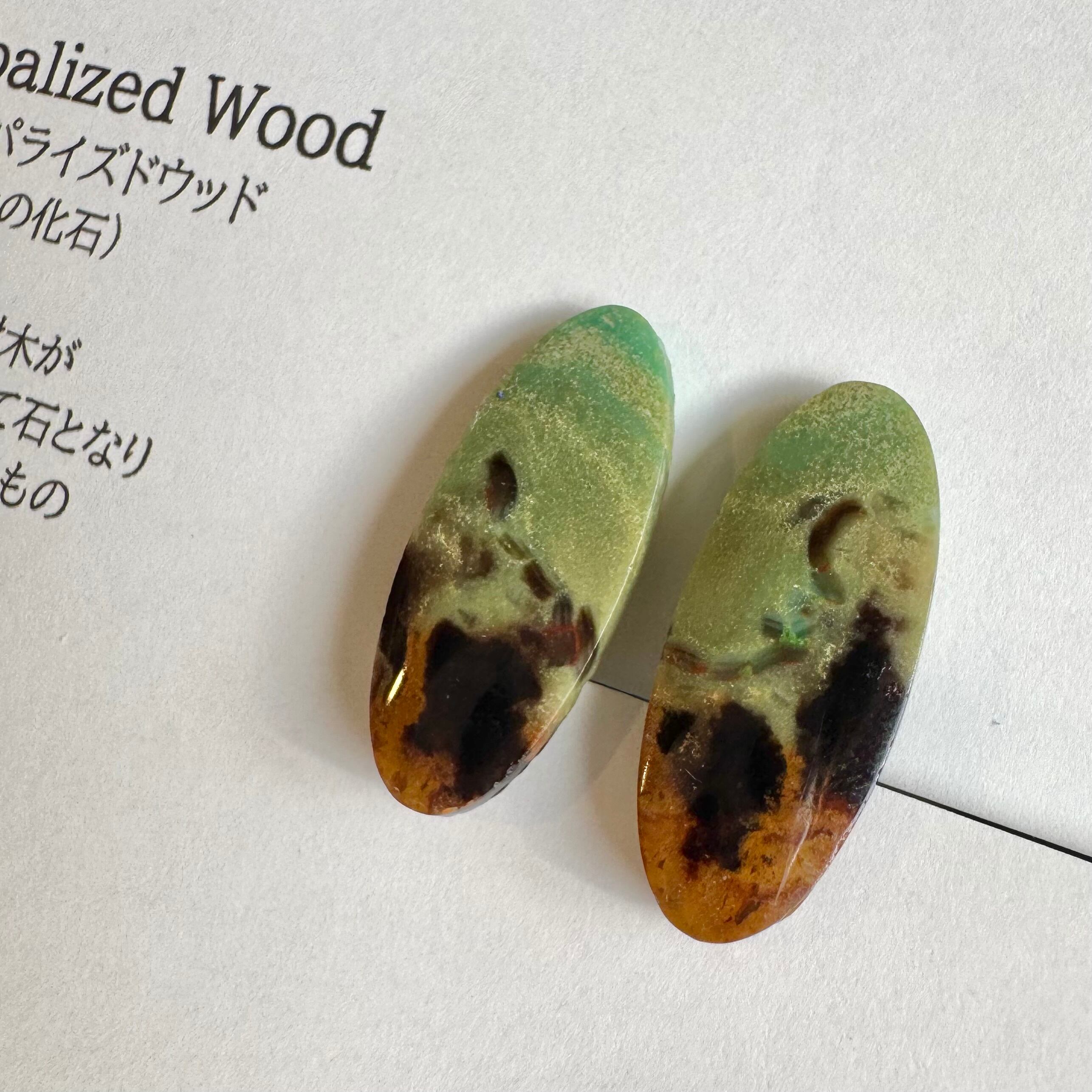 【樹木の化石】ブルーオパライズウッド*1粒イヤリング*大人カラー(ピアス不可)