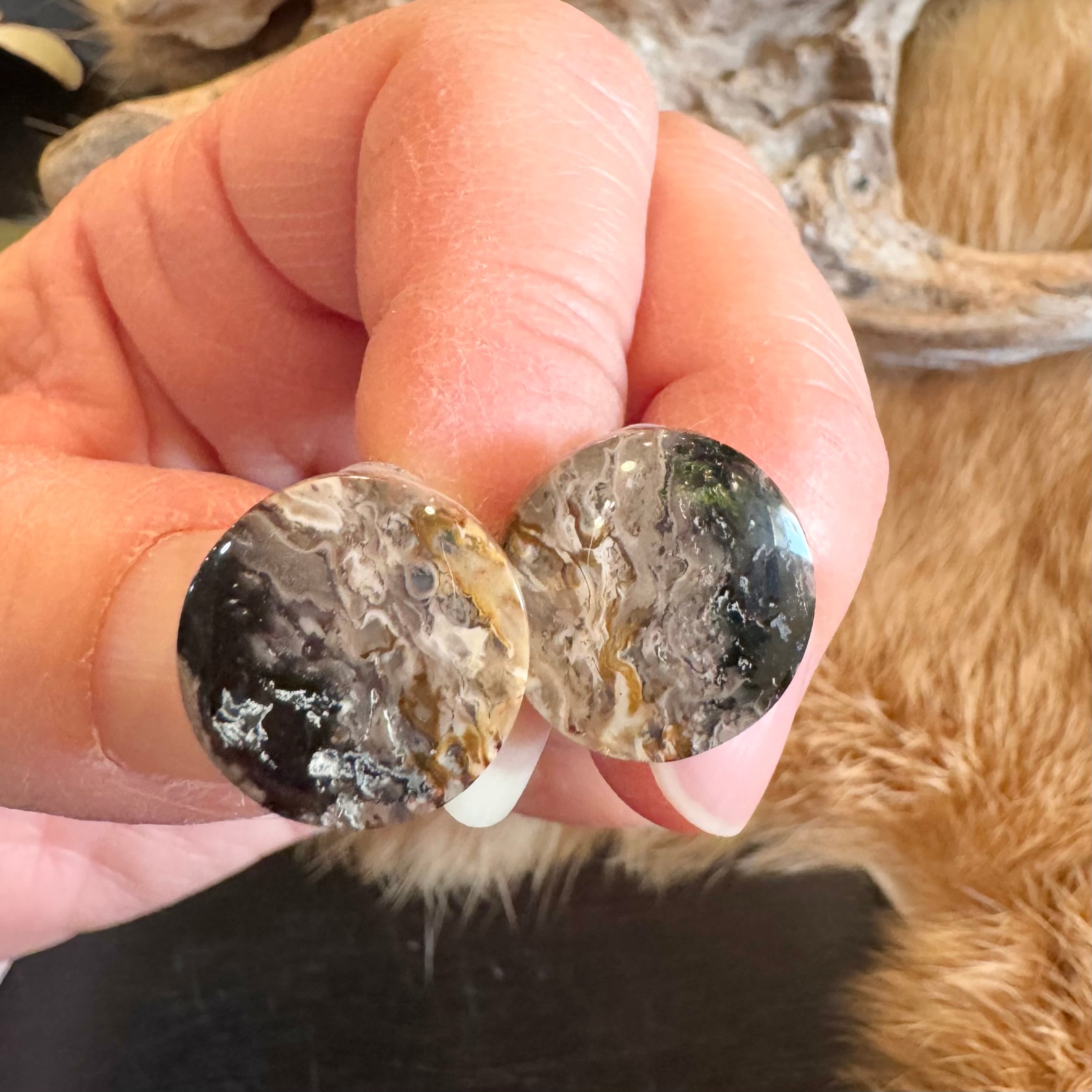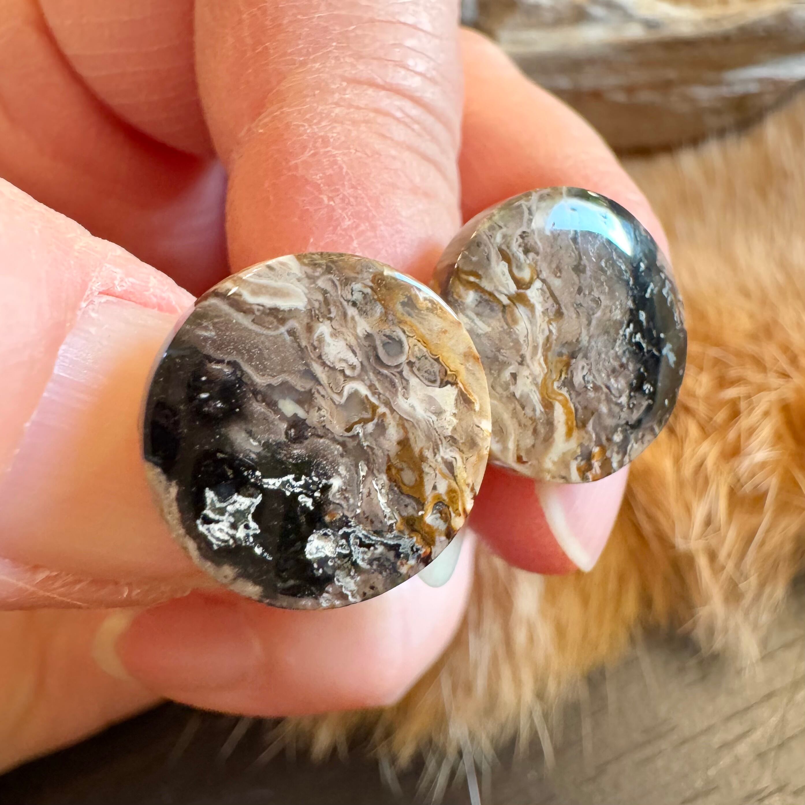 色々な色が混ざり込んだとても雰囲気のある石で、こちらのペアは黒い部分となんとなくバイカラーっぽい雰囲気になっております。