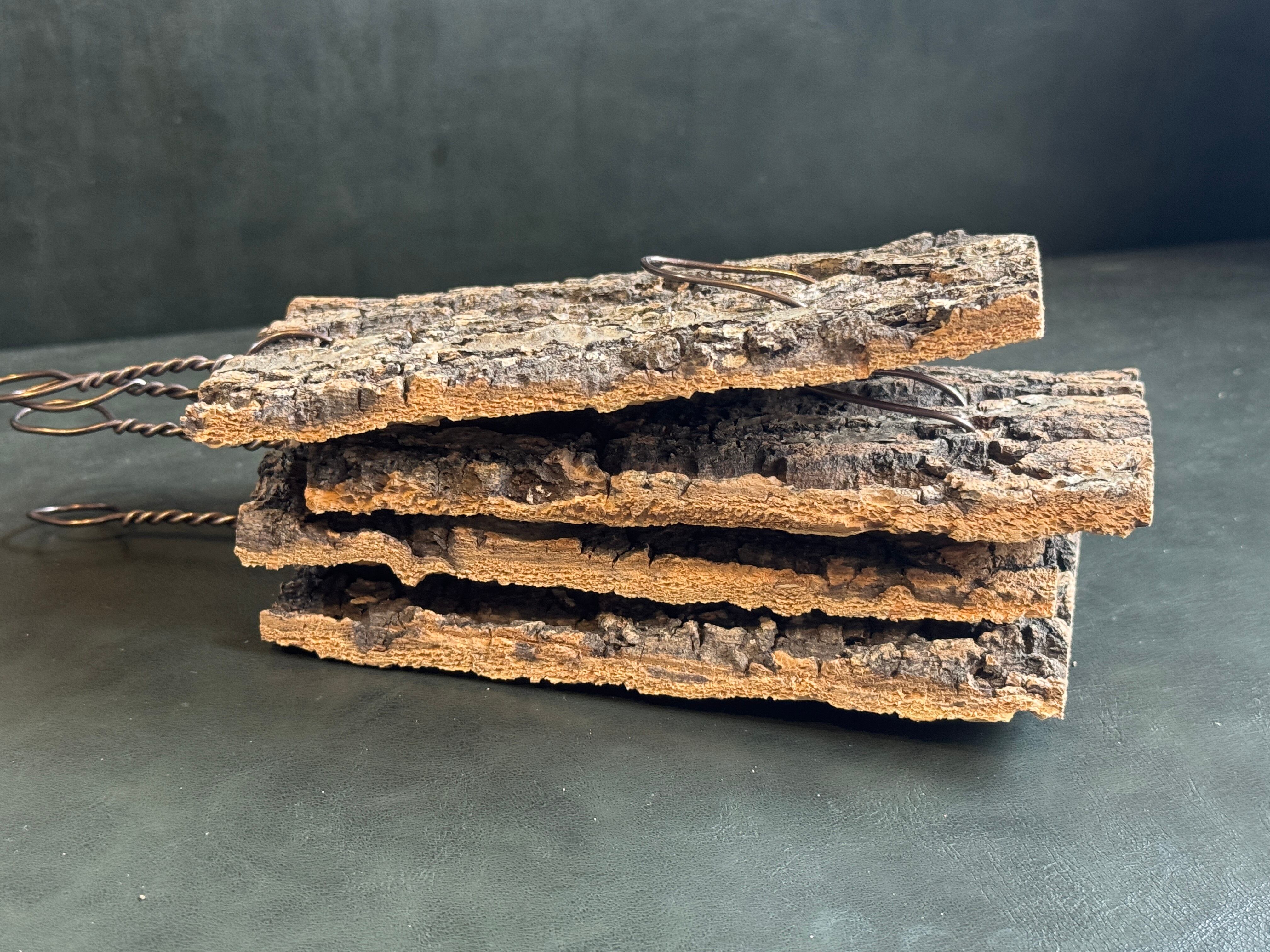 天然バージンコルク着生板(薄型)4枚セット 吊り下げフック&植物固定ワイヤー付き